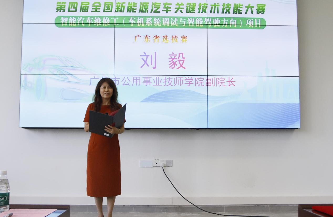 广州市公用事业技师学院副院长刘毅致欢迎辞。她对参加本次大赛的全体人员表示热烈的欢迎,并承诺将秉持公平、公正、公开的办赛原则,认真执行大赛组委会的各项规定,为全体参赛选手和裁判员提供最优质、最全面的服务保障,确保赛事顺利举办。她表示,智能汽车维修工(车机系统调试与智能驾驶方向)是顺应新质生产力发展的新赛项,学院希望以此次竞赛为契机,进一步深化专业建设和课程改革,乘势而上、奋发进取,激发创新之志,永葆工匠之心,秉持开放之策,全力打造现代职业教育创新发展高地。