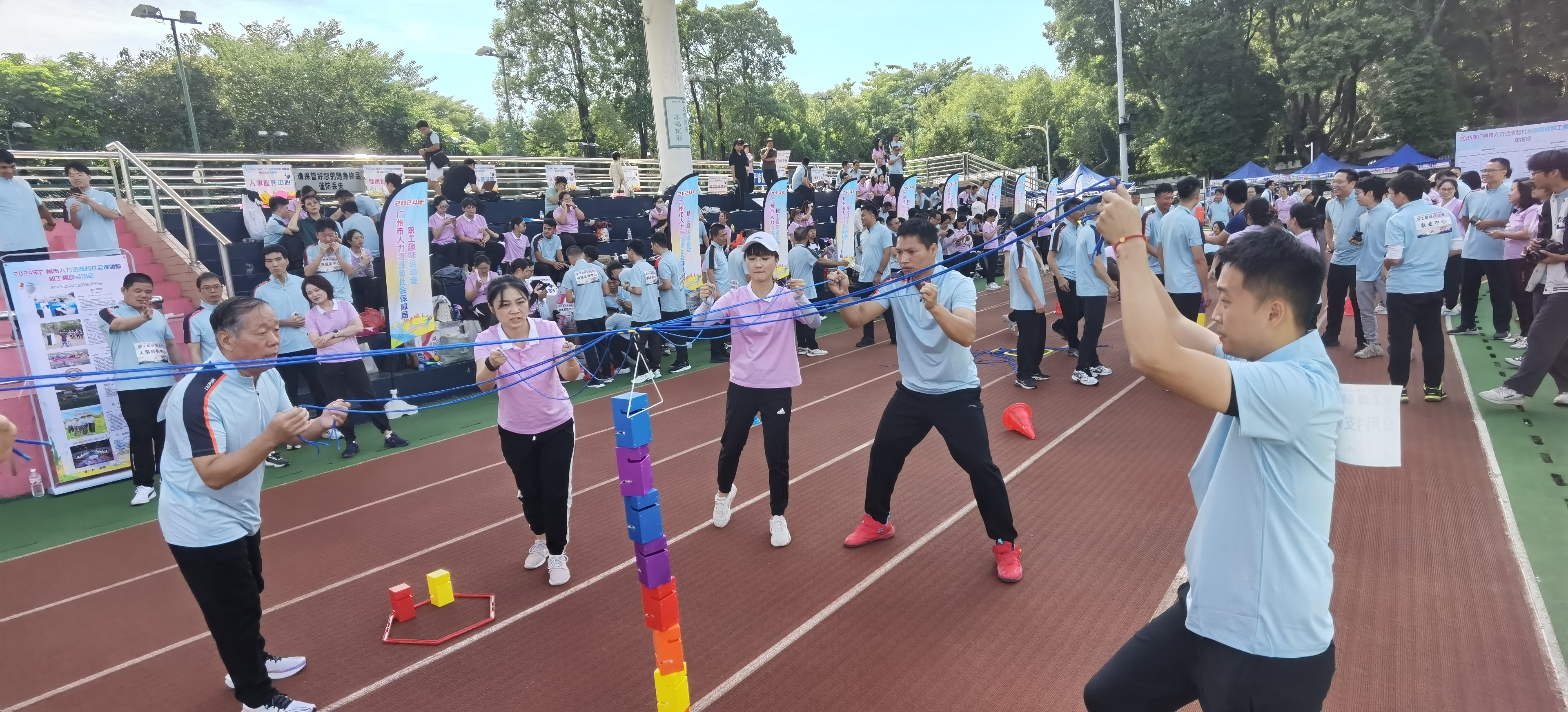 10月25日,2024年广州市人力资源和社会保障局系统工会趣味运动会在广州越秀区东山体育馆举行,来自局系统各单位的18支代表队参赛。学院高度重视、精心组织,由王尚军副院长、梁峰工会主席带领14名老师组成的代表队参赛,最终荣获总分第二名的好成绩。