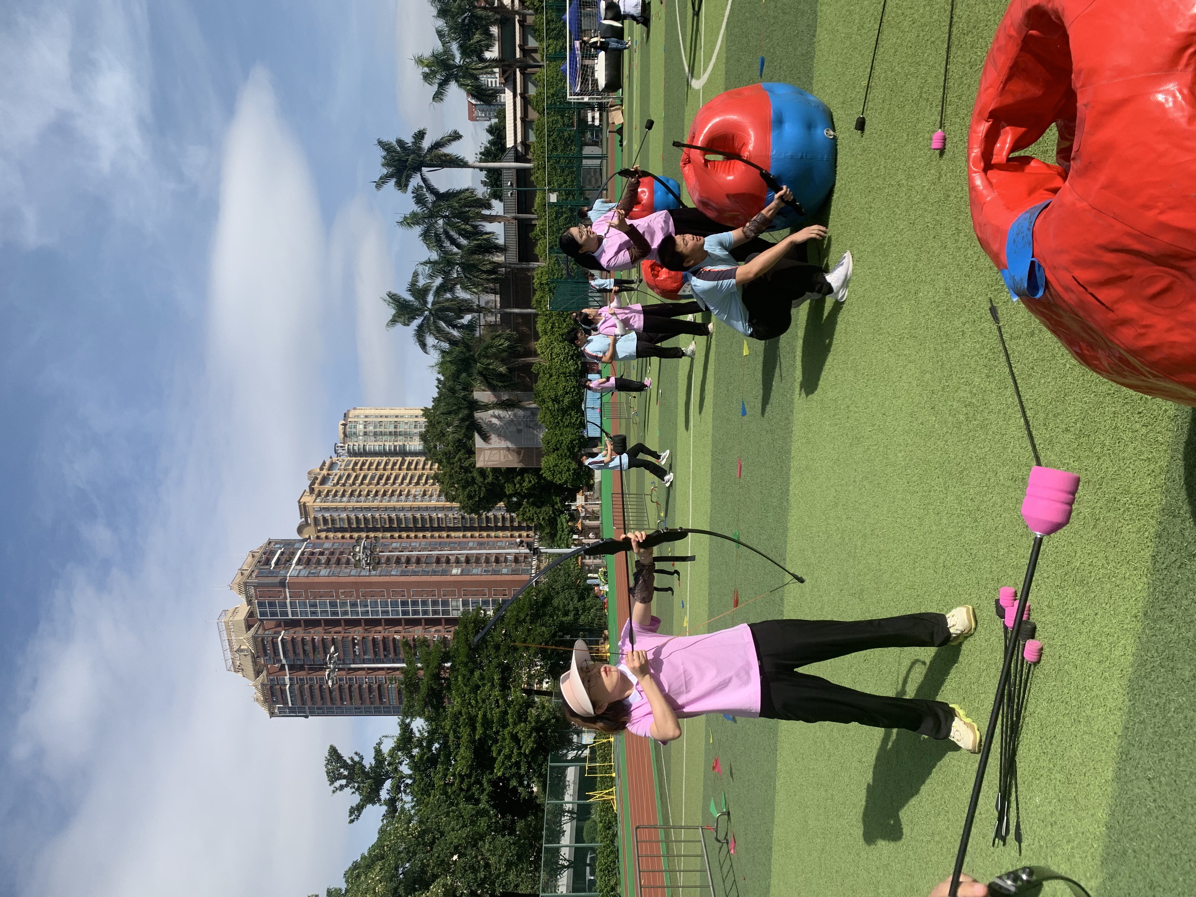 本次运动会共安排了6个比赛项目:合力建塔、攻防神射手、枕头大战、开心麻花、穿越电网、智勇大闯关。各个比赛项目成绩累加积分计算总成绩。我们的运动员们早早地来到比赛现场,争分夺秒进行赛前热身,认真准备练习比赛项目。