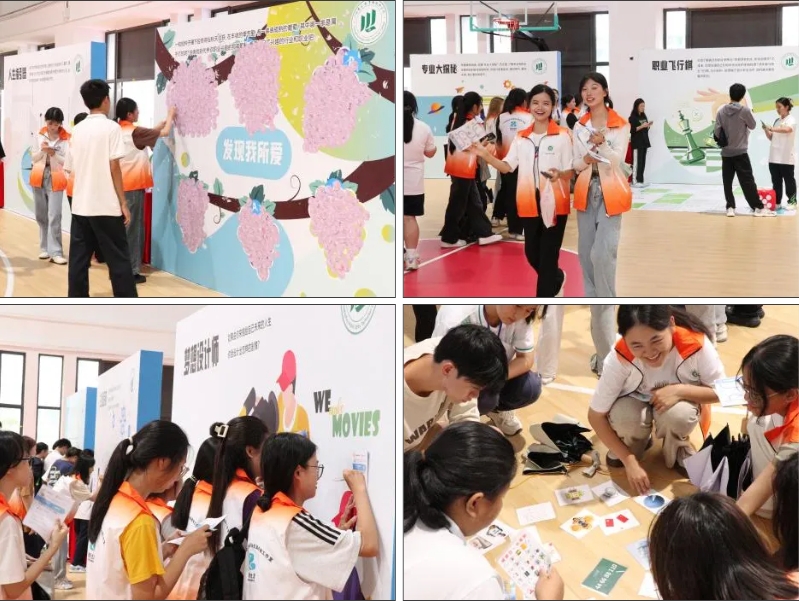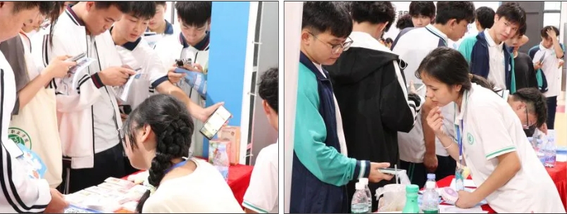 学生们在领队老师和志愿者的指引下,领取活动指南,依次闯过“愿景指南针”、“职业飞行旗”等11个生涯规划探索主题关卡,集齐通关印章,赢得奖品。学生在趣味的游戏体验中了解职业知识,掌握有关专业和职业信息与要求,提前准备相应技能和资质,有效打破学生对职业认知的刻板形象,打开职业世界的n种可能。活动结束后,学生们纷纷和“战利品”合影留念。