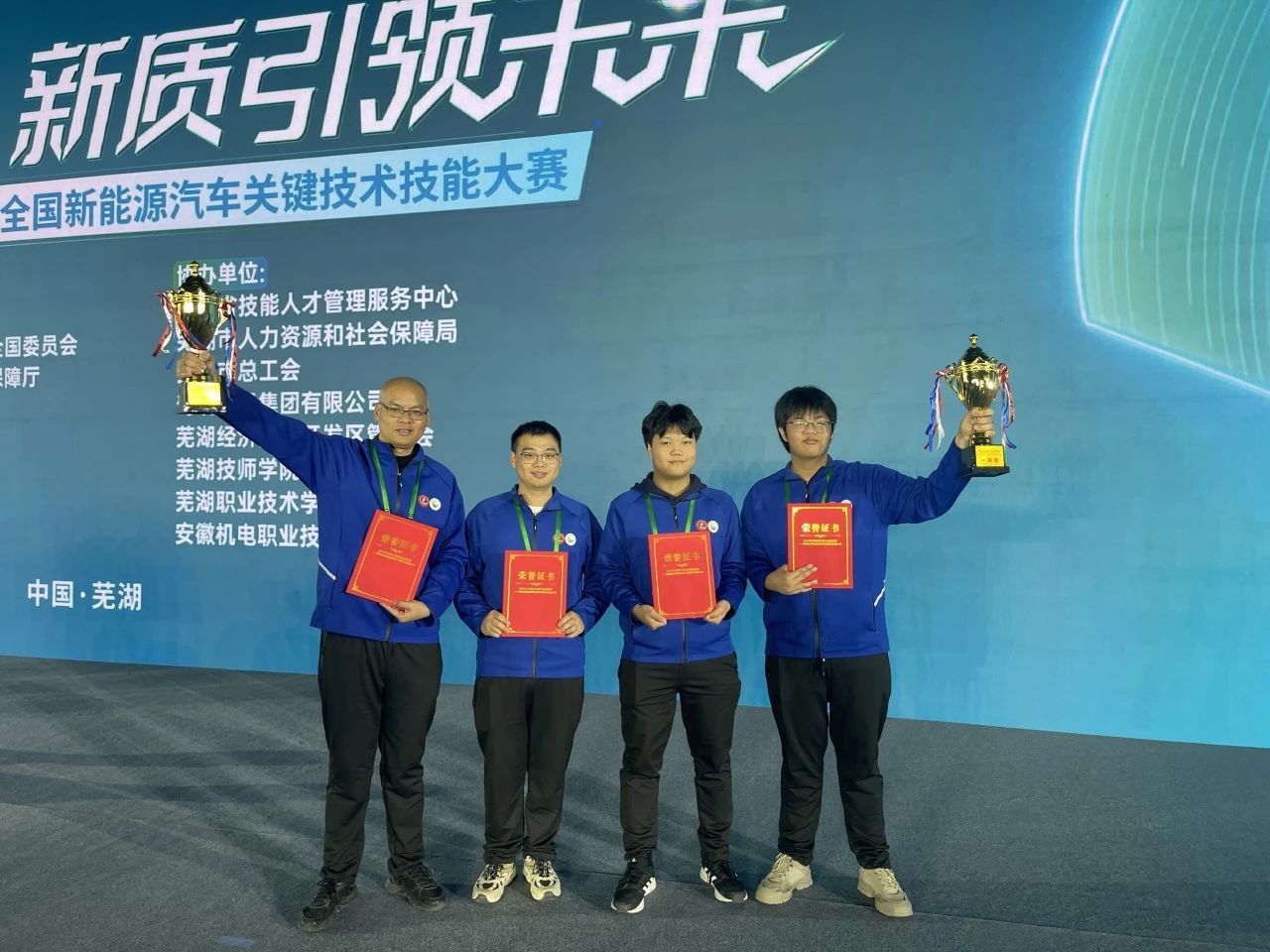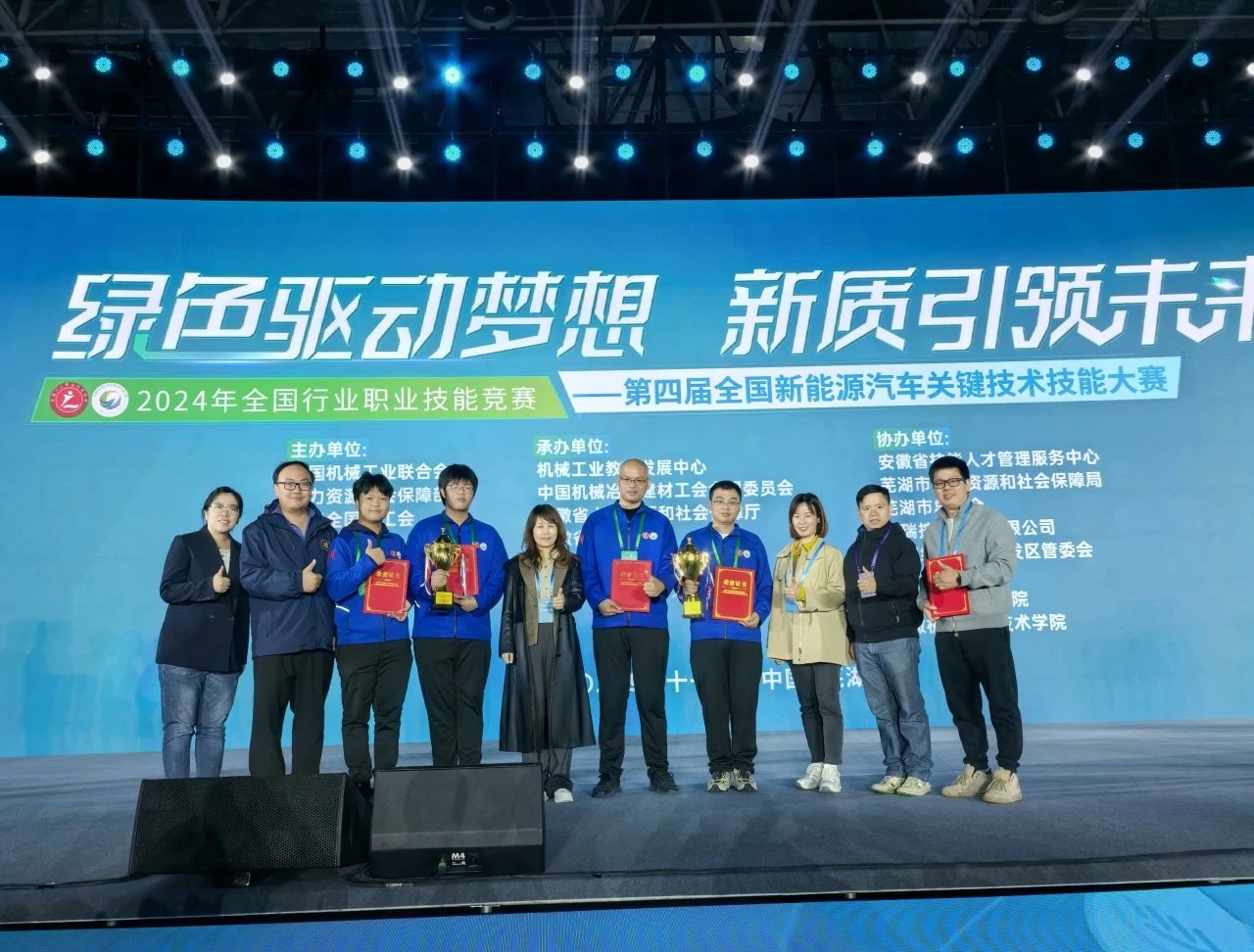 2024年11月21日,2024年全国行业职业技能竞赛——第四届全国新能源汽车关键技术技能大赛决赛在安徽省芜湖市圆满落下帷幕。在智能汽车维修工(车机系统调试与智能驾驶方向)赛项中,学院智慧交通产业系严梓维老师、信息文创产业系江翰老师荣获职工组一等奖,21程序设计班朱兆基同学、21智能汽车1班吴东骏同学荣获学生组一等奖,王尚军副院长、智慧交通产业系周泳鑫老师荣获“优秀教练”。