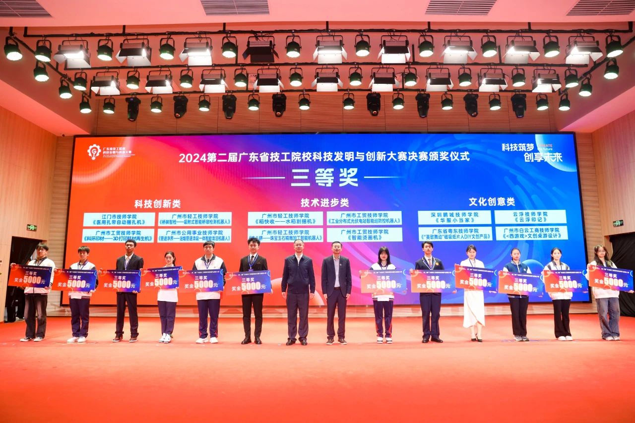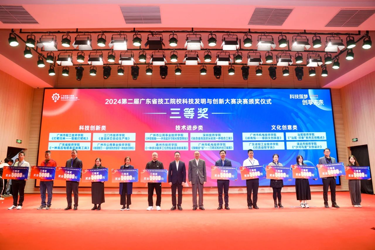 12月10日至12日,由广东省人力资源和社会保障厅主办、广东省职业培训和技工教育协会承办的第二届广东省技工院校科技发明与创新大赛(省一类赛)决赛在广州隆重举行。学院科技创新类教师组钟锡玲团队“桂冠智刃”项目、学生组胡芷青团队“管途净界”项目、技术进步类教师组许楠团队“环控智脑”项目脱颖而出,荣获三等奖,每个项目获奖金5000元,技术进步类教师组谢稳团队“AI不释手”项目荣获优胜奖,学院荣获“优秀组织单位”称号。
