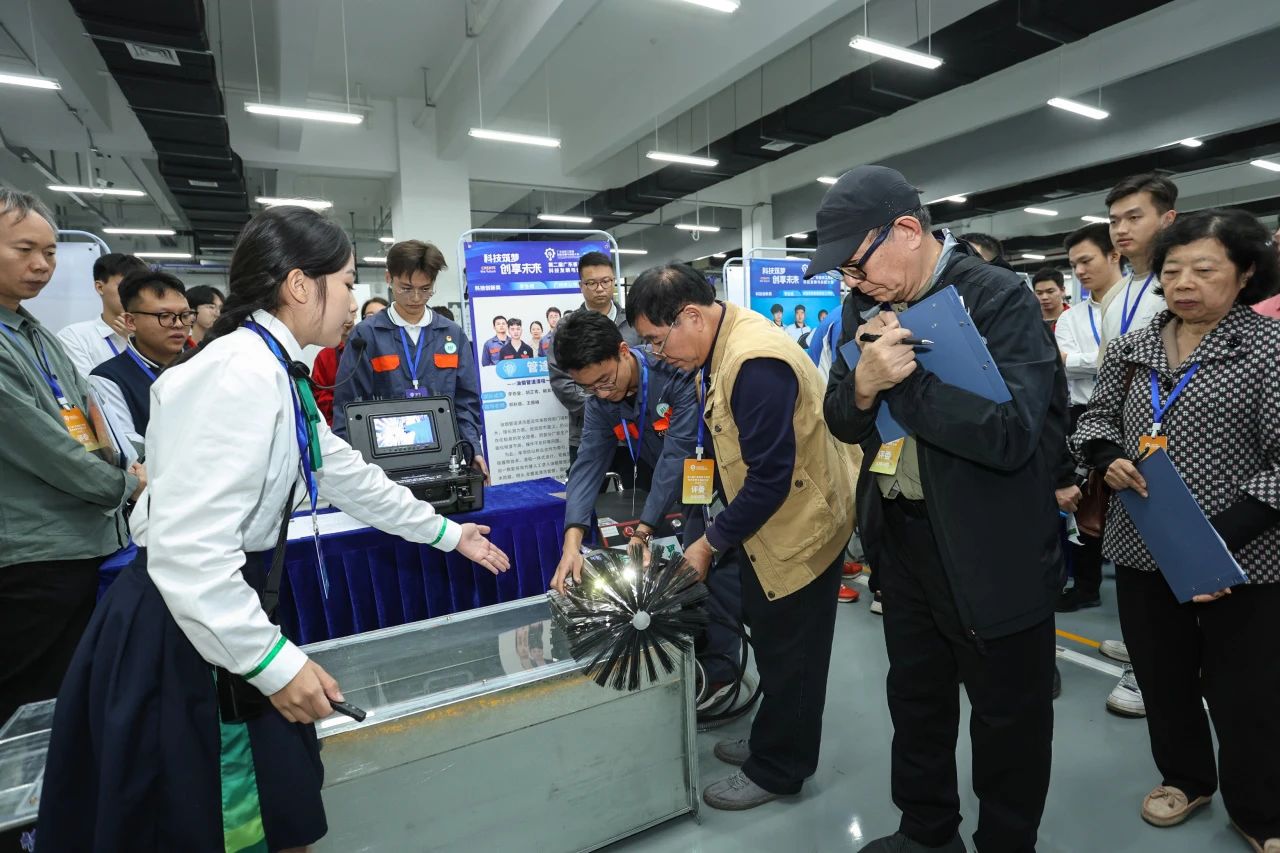 “管途净界——油烟管道清吸一体智能清洁机器人”项目解决油烟管道高污染和人工高风险作业痛点,集清洁模块、运动模块和辅助模块的智能清洁机器人,采用高清双屏显示,能观测管道清洗情况,通过光耦隔离续电器,实现对机器人的操控。