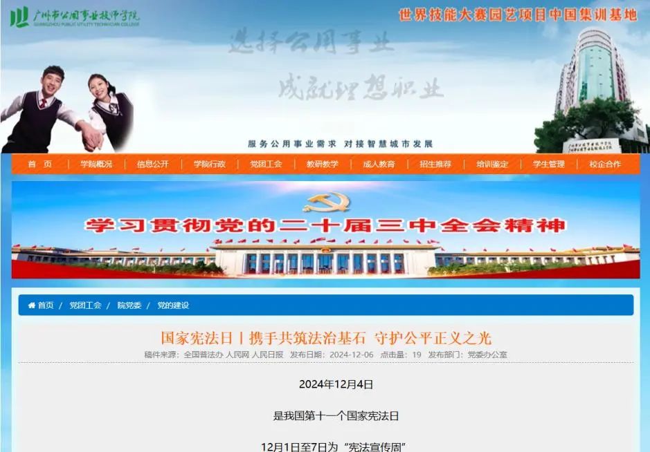 12月,学院通过学院公众号、官网网站宣传宪法知识