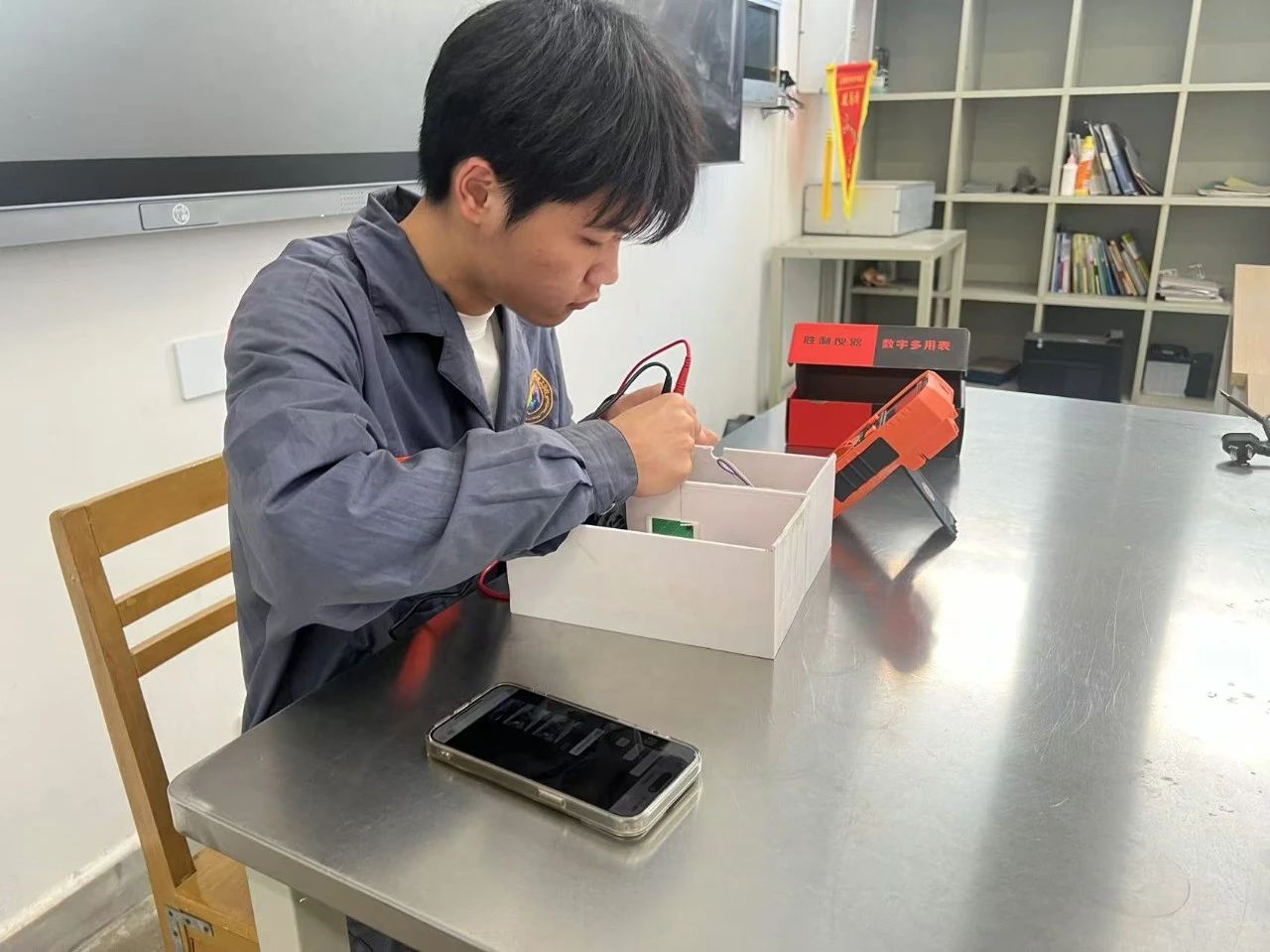 然而,在测试过程中,问题频出。由于经验不足,在制作时未充分考虑PTC风扇的用电量,导致电流不足,无法成功驱动风扇。传感器数据存在误差,导致系统发生误报……这些问题让项目组陷入困境,在指导老师的鼓励下,他们经过多次排查,发现电路设计存在问题,导致电流分配不均。通过调整电路设计,解决了无法驱动风扇的问题。经过反复调试和校准,发现传感器与主控芯片之间的通信协议不兼容,调整通信协议,重新进行测试,解决了传感器数据不准确的问题。在此基础上,优化了热风输出系统,确保热风能够均匀、高效地吹拂教学一体机内部,有效去除湿气。新增了烟雾报警器、蜂鸣器等功能模块,以提升产品的安全性和实用性。同时,指导老师带领项目团队走访企业,完善产品功能,根据企业反馈新增了尘埃检测模块、充电电流检测模块以及蓝牙技术,并申请了发明专利(发明创造名称:一种充电桩监控方法,申请号:202410959151.3)。