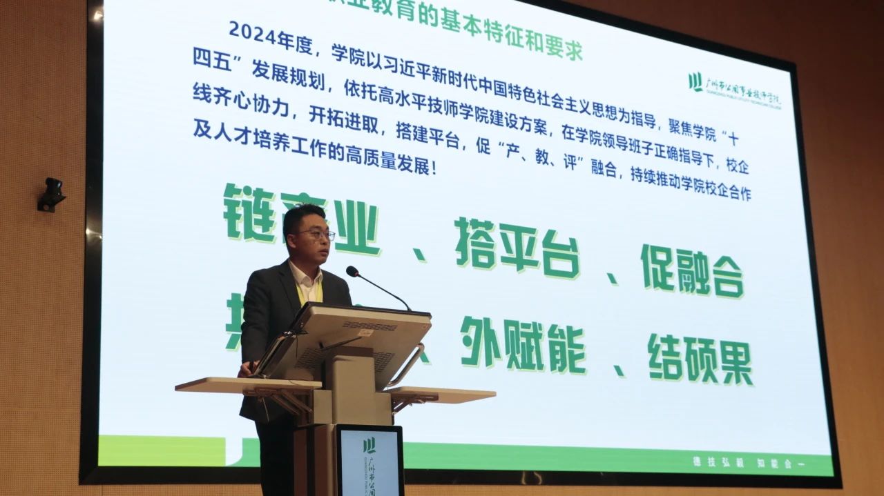 校企合作办公室副主任梁钢作校企合作工作总结。学院以产业链联动专业群,多元协同政府部门、行业、企业,搭建职业教育平台,同组品牌产业学院,深耕产教评生态链,落实“三方九出八共”模式,联合企业共建培训基地,组建校企双制班,聚焦协作帮扶赋能,助力百千万工程。学院入选人社部第二批技工教育联盟建设院校名单与工信部产教融合数字化实践中心建设名单,成功举办职教集团、校企合作年会,推动培育创新产业技能人才。