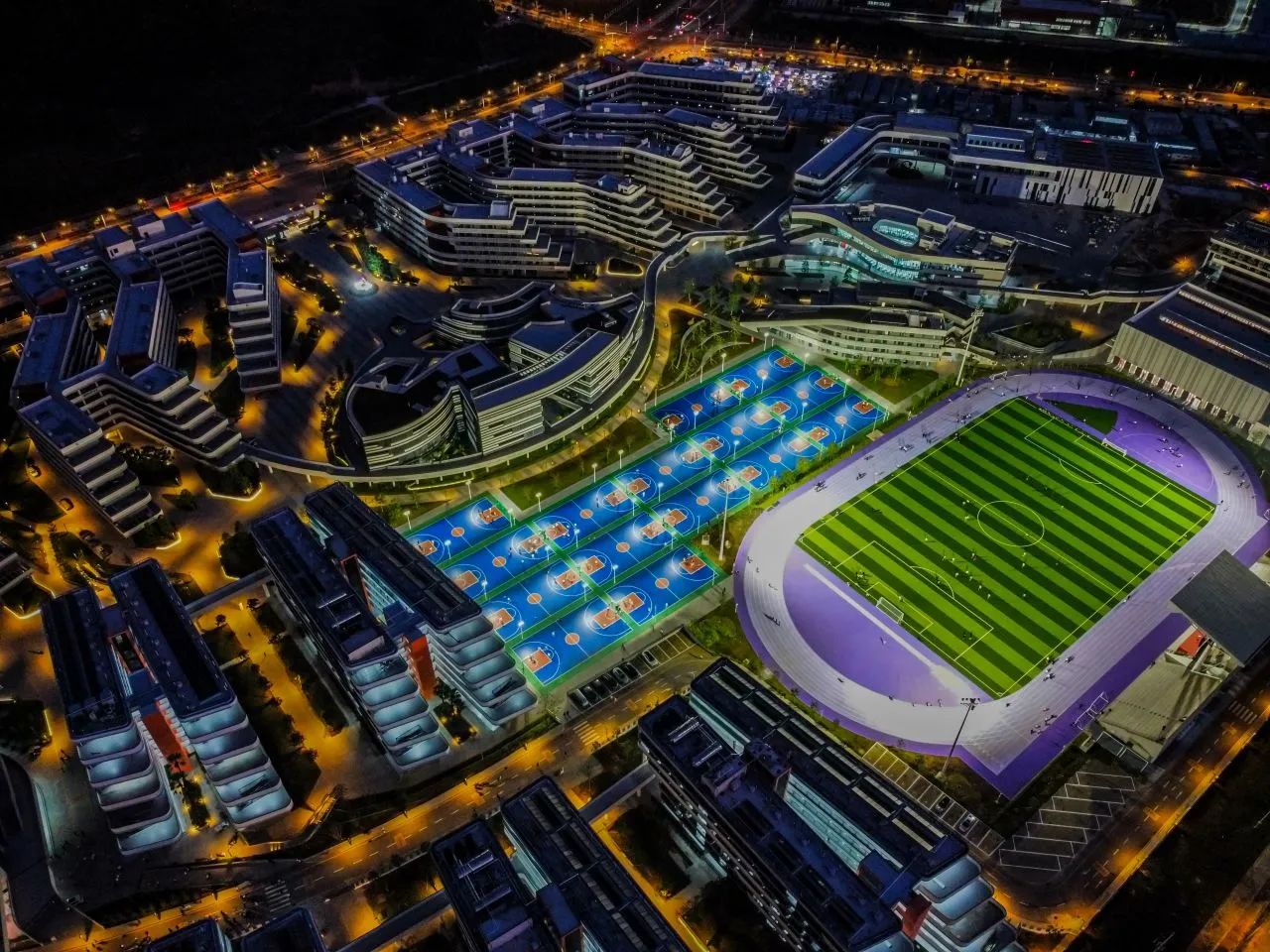 作品简介: 航拍视角下,广州市公用事业技师学院校园夜景如诗如画,美景尽收。建筑群在灯火与星光交相辉映中美轮美奂,宛如一座座璀璨的宫殿;林荫道变成了一条条光带,在宁静的夜色中跳跃穿梭;操场上的光影变幻莫测,像是大地的脉动,展现着青春的力量。从天空俯瞰,整个校园仿佛被施了魔法,静谧而神秘,让人沉醉。