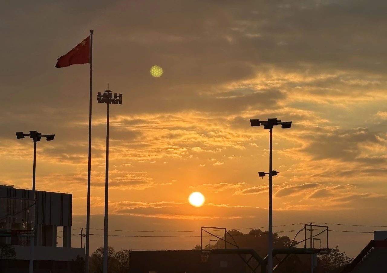 作品简介:傍晚时分,夕阳的余晖铺满校园。操场边,国旗杆上的五星红旗在微风中舒展,那一抹鲜艳的红与暖橙色的夕阳相互映衬。夕阳给校园镀上温柔色彩,国旗则如炽热的信仰坚守在此。学子们路过,总会投来崇敬目光,这画面满是青春朝气与爱国情怀,成为校园里最美且难忘的独特景致。