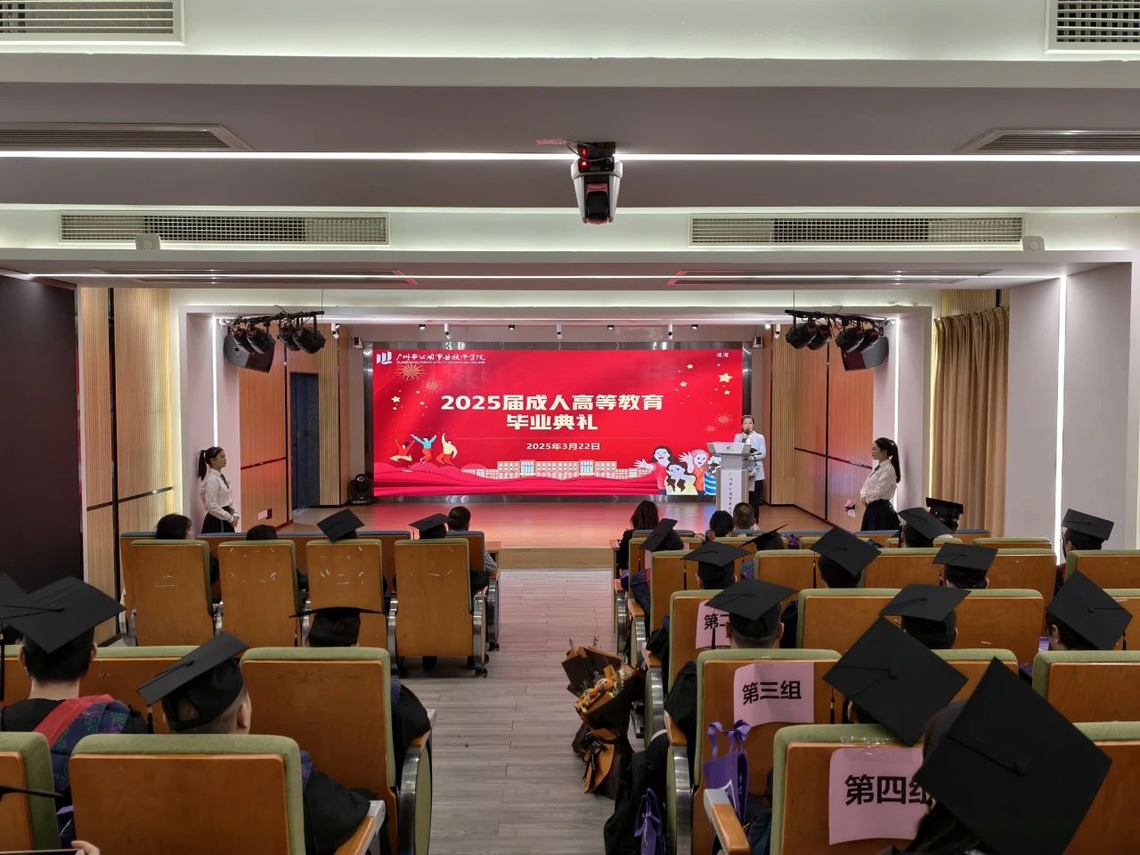近日,学院举行2025届成人高等教育毕业典礼,学院副院长刘毅与2025届成人大专本科近70名师生参加。会上,由舞蹈队和街舞社学生的精彩节目《我的未来式》热情点燃全场,毕业纪念视频短短的几分钟,每一帧画面都是成长的印记,见证了同学们三年来的不易和辛苦、努力和收获。