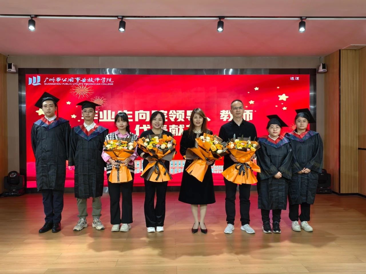 毕业生向教师、班主任代表献花
