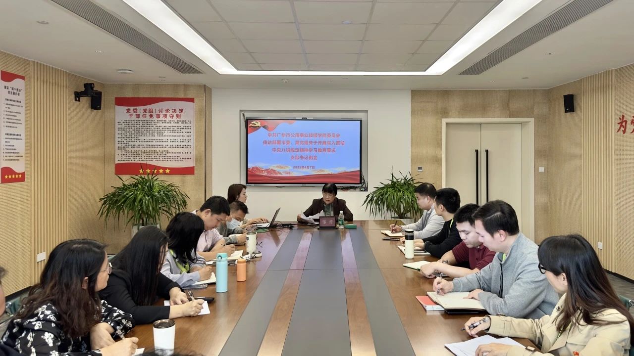 为进一步压实各党支部主体责任,高标准落实中央八项规定精神学习教育,学院党委书记邹菁同志主持召开党支部书记例会,传达市委和局党组关于开展深入贯彻中央八规定精神学习教育要求以及学院学习教育实施方案。