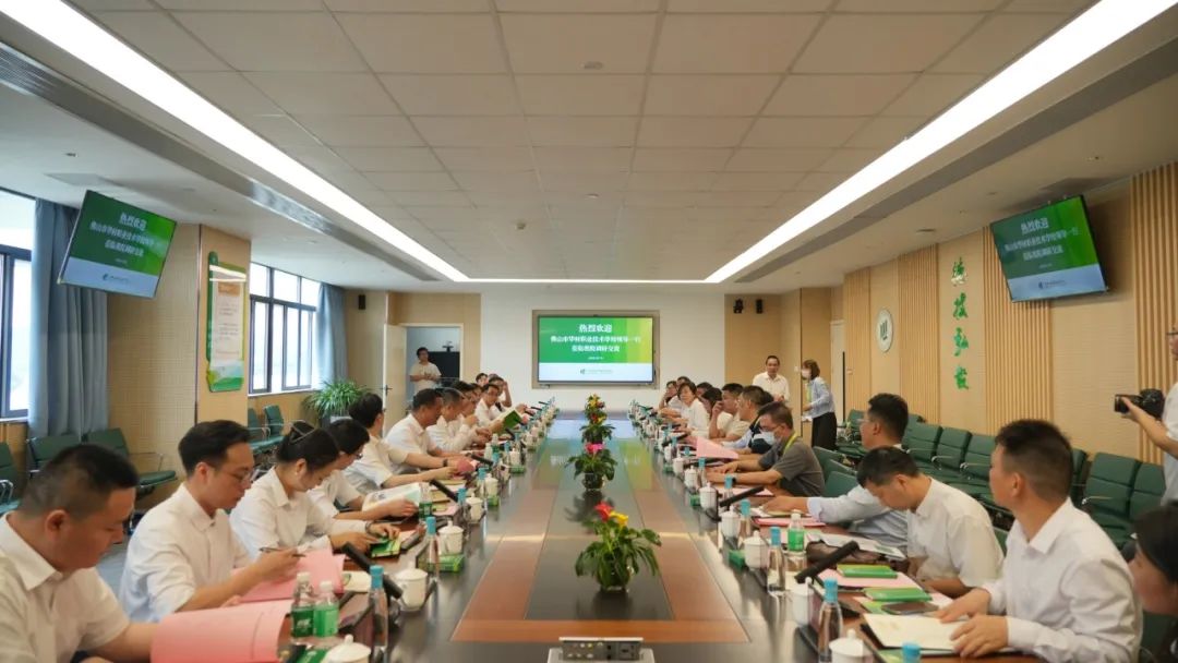 佛山市华材职业技术学校调研组一行对科教城校区进行了全面参观,考察了各产业系实训基地、智慧教学空间,细致了解学院 "专业链对接产业链" 的空间布局理念。调研组对学院办学成果及新校区建设给予了高度肯定。