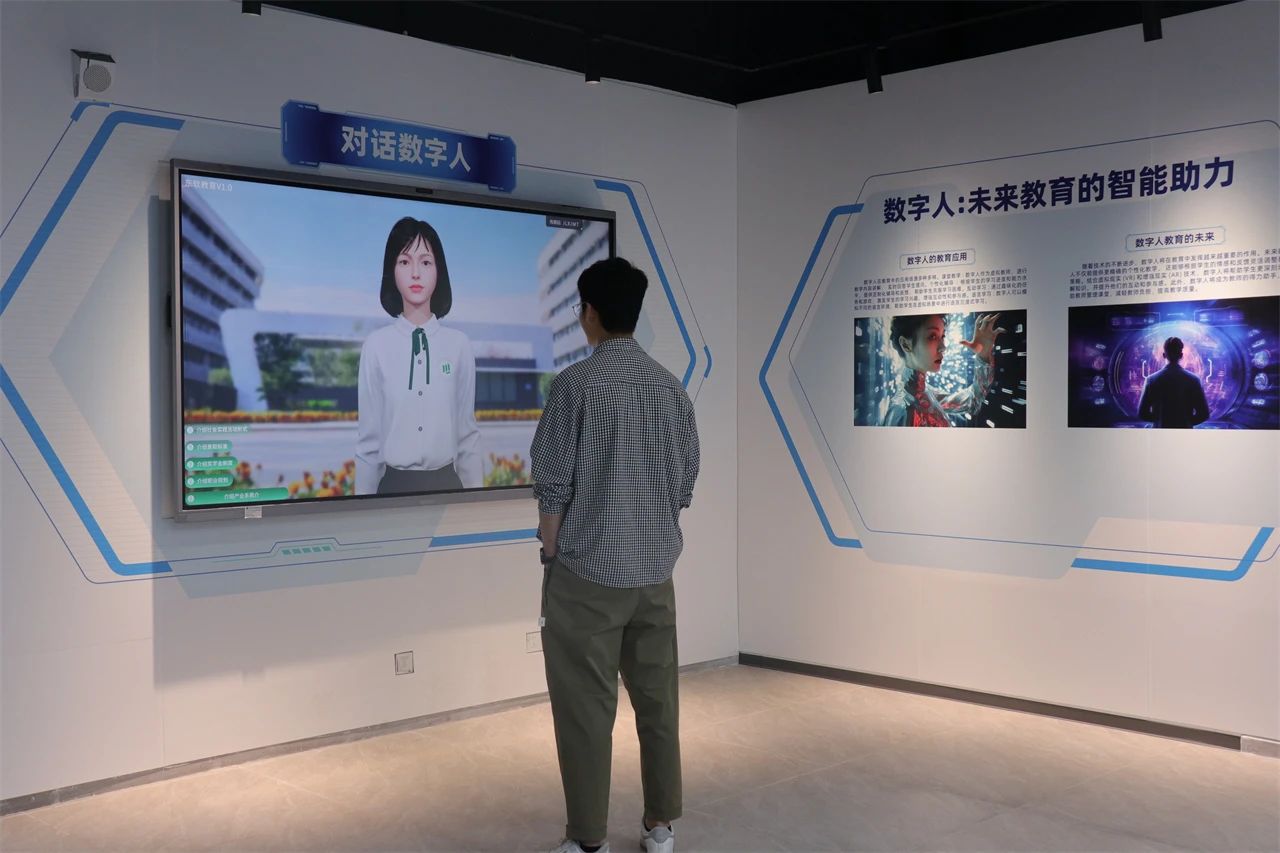 学院各产业系积极探索,运用AI技术赋能专业建设。信息文创产业系打造元宇宙数字技术展示厅,依托前沿的元宇宙展示平台、AIGC人工智能生成内容系统及智能对话数字人三维可视化软件,构建沉浸式智慧教学新范式。
