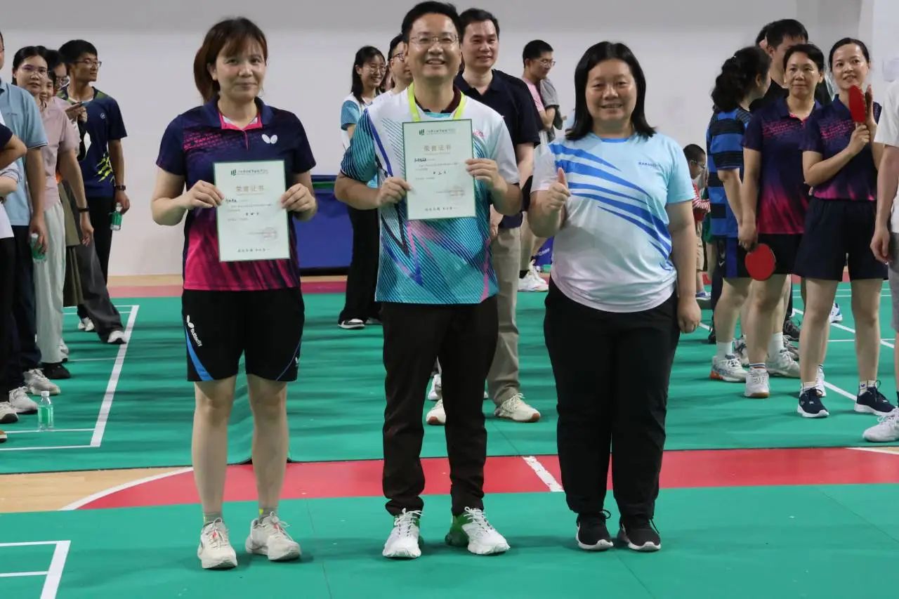 颁奖仪式上,获奖队员兴奋举起奖状,脸上洋溢着胜利的喜悦。本次乒乓球团体赛不仅展现了教职工的精彩球技,更充分体现了团结一心与拼搏进取的团队力量。