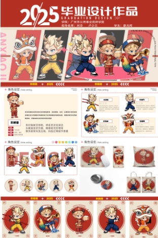 设计:黄春兰、李玉冰、李紫晴导师:郑玉萍、卢少兰设计灵感:以潮汕英歌舞服饰和头饰为主,融合广州文化特色,塑造可爱Q版IP形象。