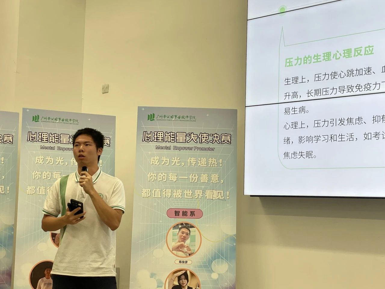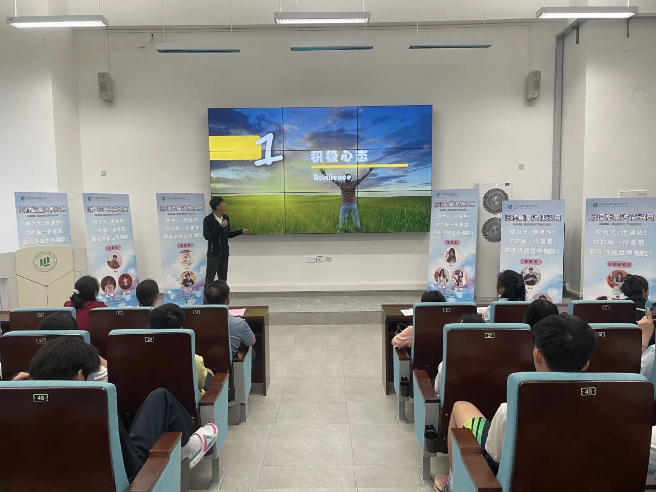 当天晚上,还举行了学院首届“心理能量大使”决赛。经过前期各产业系选拔,脱颖而出的决赛选手们站在舞台上,围绕“心理韧性”“积极心态”“情绪感染”“生命意义” 等主题,进行了主题演讲。同学们或分享亲身经历,诠释如何在逆境中保持坚强;或阐述对幸福的理解,传递乐观向上的生活态度;或探讨如何识别心理困扰,伸出温暖的援手……他们的表现,生动诠释了“心理能量大使”的内涵:不仅是心理健康的示范者,更是温暖的传播者、积极的引领者。