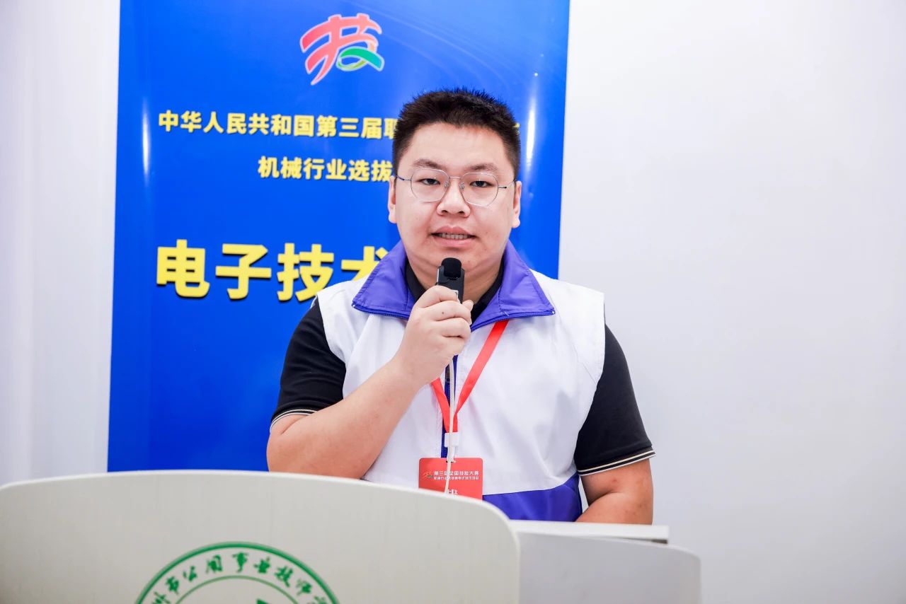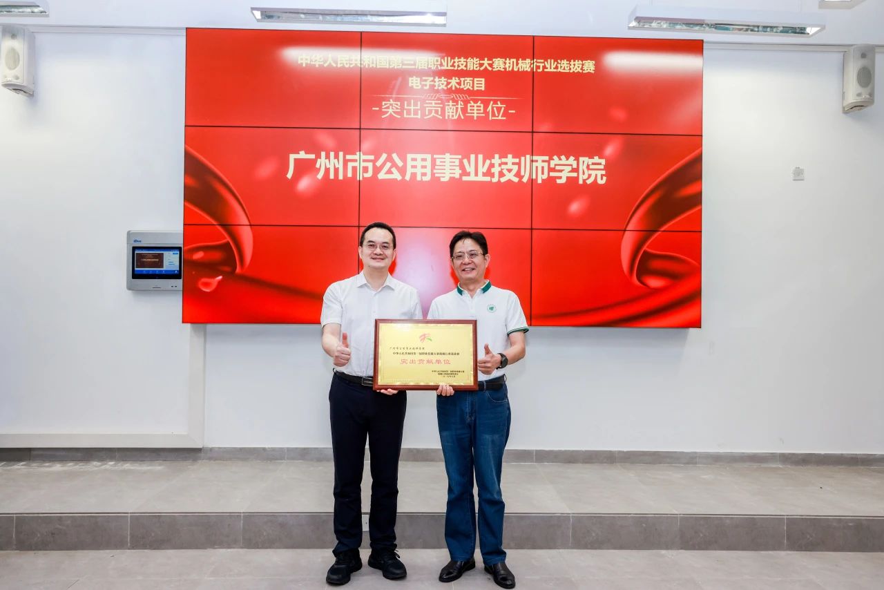 6月13日闭赛仪式举行,机械工业教育发展中心技工教育和培训处处长刘加勇、技术主管甘学沛,广州市公用事业技师学院院长鲁储生、副院长刘毅,电子技术项目裁判长、世赛电子技术项目国家队专家梁攀,技术支持单位广州全域叶琦等出席闭赛仪式。