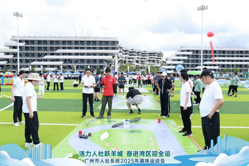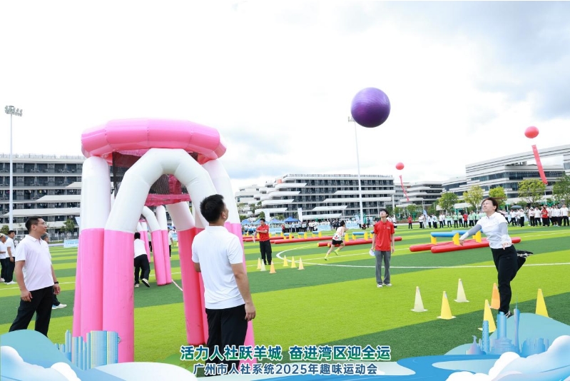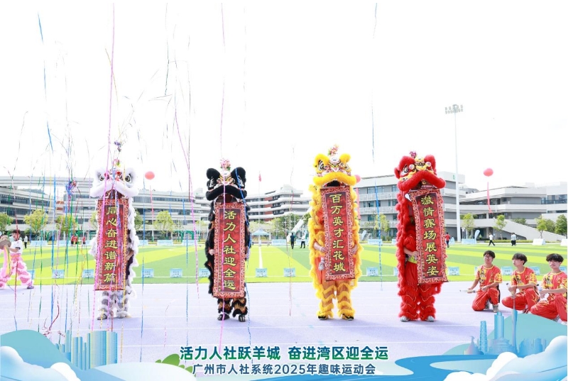 上午9时,运动会正式开启。在雄壮的国歌声后,广州市人力资源和社会保障局副局长李明华宣布运动会开幕,醒狮鼓舞表演瞬间点燃全场激情,在蓝天白云下,在绿茵茵的草坪上,欢呼声、雀跃声此起彼伏,立刻汇聚成欢乐的海洋。本次赛事以“金发羊城聚英才 活力人社迎全运”为主题,精心设计五项深度融合人社职能的趣味项目。