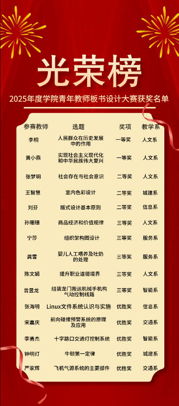 学院将持续为教师创设多元学习提升平台,助力青年教师锤炼扎实教学基本功,不断提升教师专业教学水平,推动学院教学高质量发展,为培育高素质技术技能人才夯实基础。