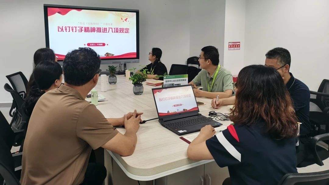 学院党委书记邹菁讲授《深入贯彻中央八项规定精神,筑牢廉洁自律防线》专题党课,带领党员回顾了中央八项规定的发展历程,以及推动党的作风建设取得历史性、开创性成就;逐字逐句学习中央八项规定及《中央列出违反八项规定清单80条》主要内容。她强调,我们要弘扬党的光荣传统和优良作风,严于律己、严管所辖、严负其责,锲而不舍贯彻落实中央作风建设规定精神,坚定不移推进全面从严治党,以好作风增强战斗力,以好生态凝聚正能量,持续推动作风建设向上向好,推动学院高质量发展再上新台阶。