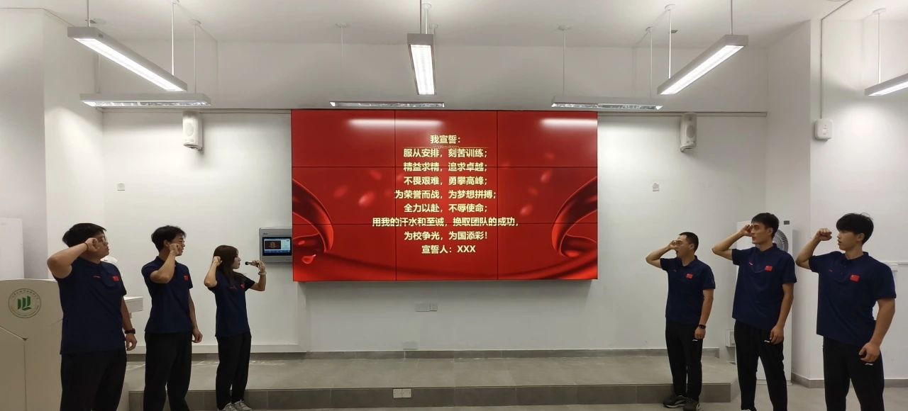 大会举行了庄严的授旗仪式,副院长刘毅将象征荣誉与使命的队旗授予选手代表。全体队员在严紫洋同学带领下集体宣誓,用铿锵誓言展现了选手们的昂扬斗志。