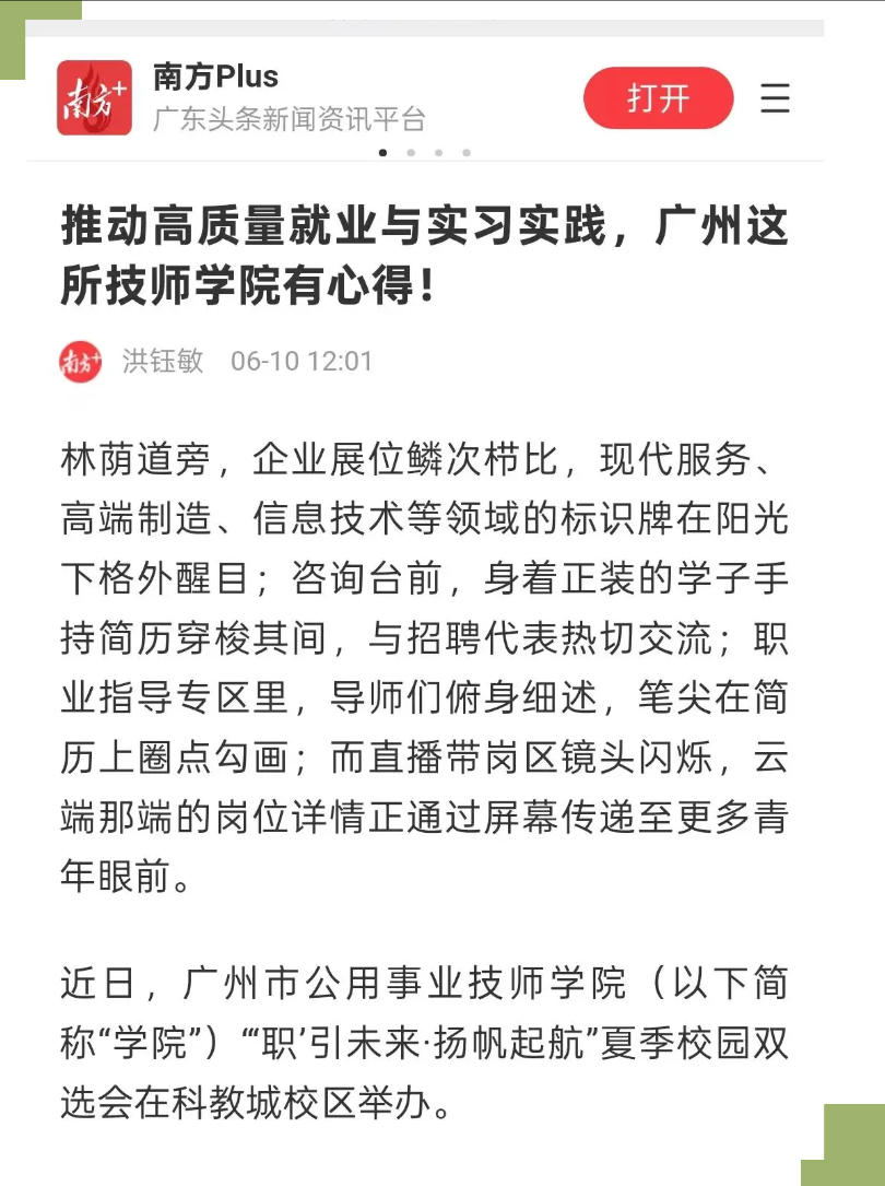 《推动高质量就业与实习实践,广州这所技师学院有心得!》报道全文如下: