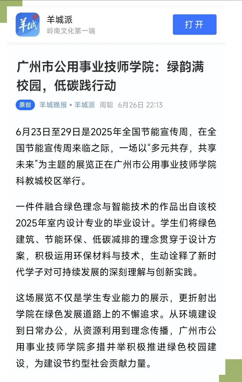 《广州市公用事业技师学院:绿韵满校园,低碳践行动》报道全文如下: