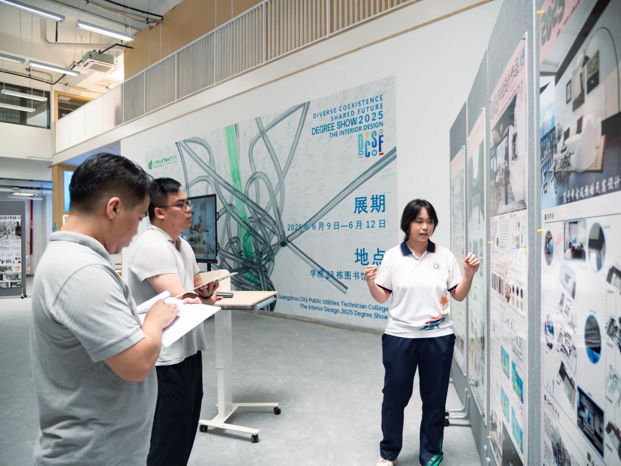 “6月23日至29日是2025年全国节能宣传周,在全国节能宣传周来临之际,一场以“多元共存,共享未来”为主题的展览正在广州市公用事业技师学院科教城校区举行。一件件融合绿色理念与智能技术的作品出自该校2025年室内设计专业的毕业设计。学生们将绿色建筑、节能环保、低碳减排的理念贯穿于设计方案,积极运用环保材料与技术,生动诠释了新时代学子对可持续发展的深刻理解与创新实践。