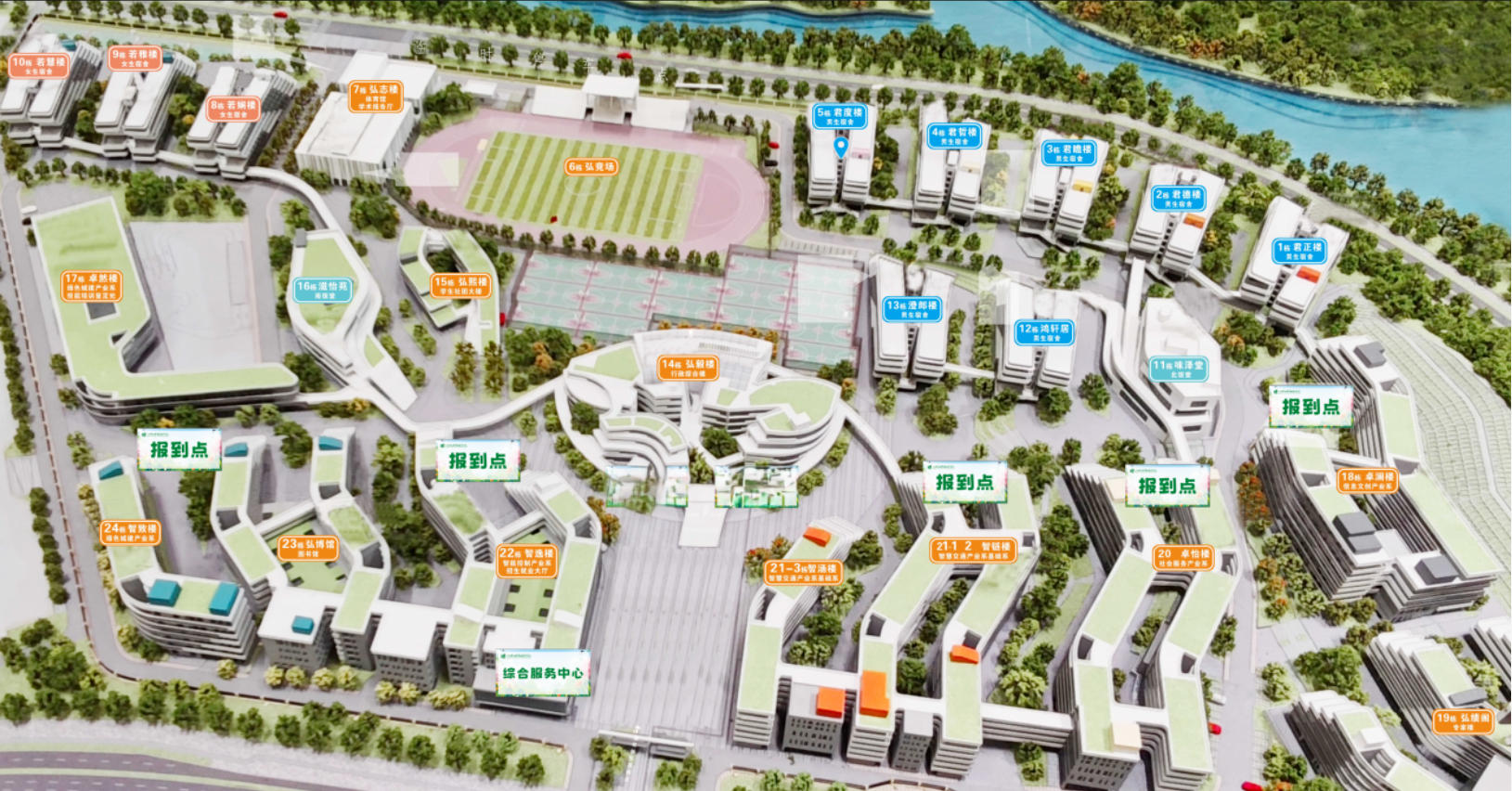 如“迎新地图”所示,新生到专业所属产业系报到点(22栋智能控制产业系、24栋绿色城建产业系、21-1栋智慧交通产业系、18栋信息文创产业系、20栋社会服务产业系)对接班主任,完成报到。