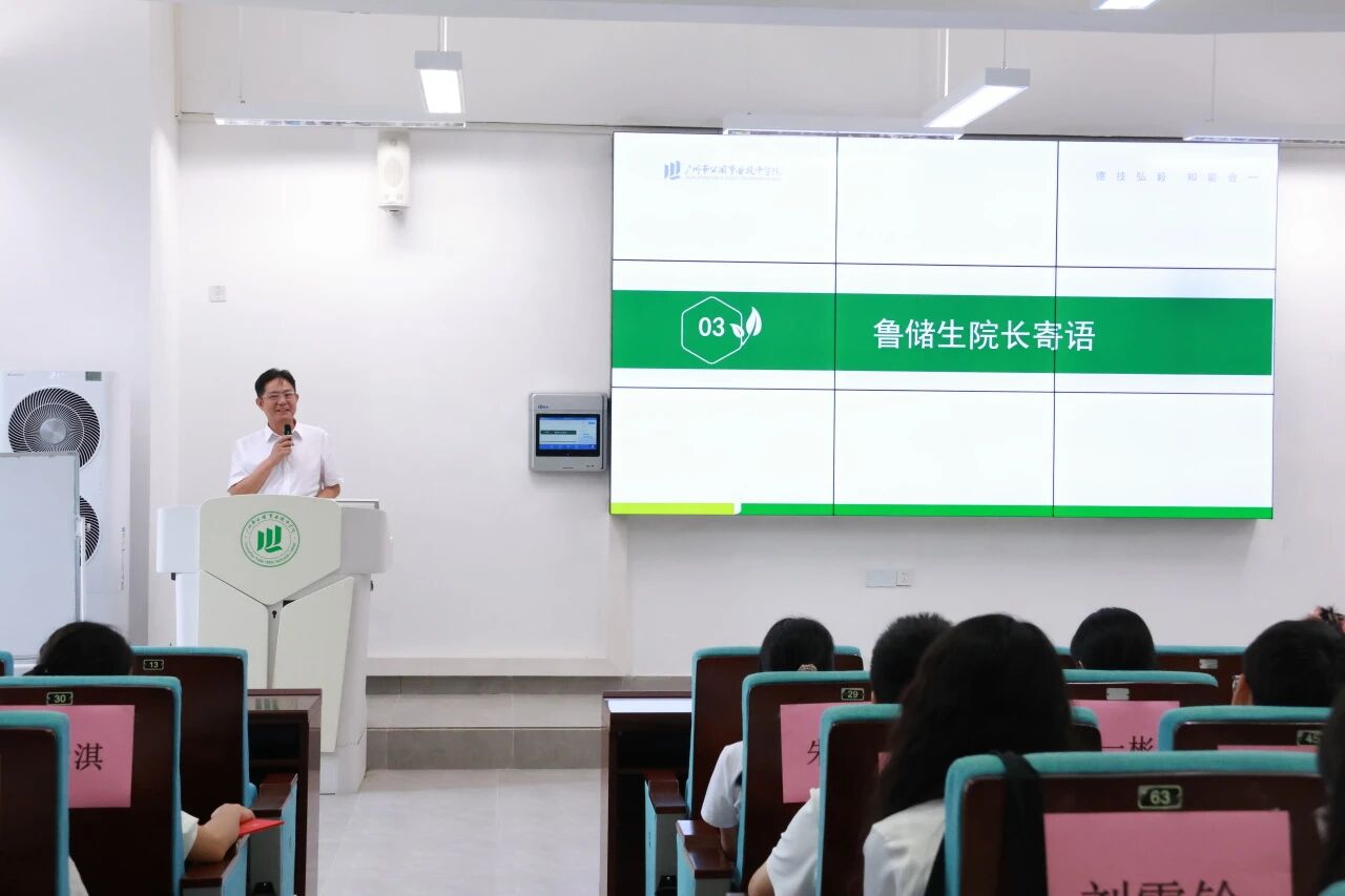 院长鲁储生围绕职业认同、职业价值和职业发展等内容发表讲话,强调“研究”在工作中的重要性,提出“行动导向”的方式,并用“世界终将是你们的”这句简短却有力的话表达了对各位新教师的期望。