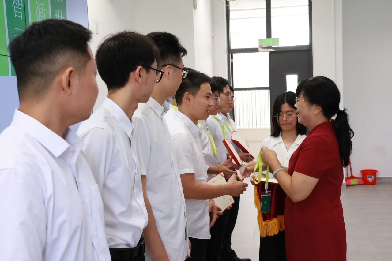 三位新教师代表分享培训心得,字里行间展现着他们的满满收获与对未来的期许。随后,院领导为各位新教师佩戴工作证及颁发结业证书,并对他们送上寄语和鼓励。