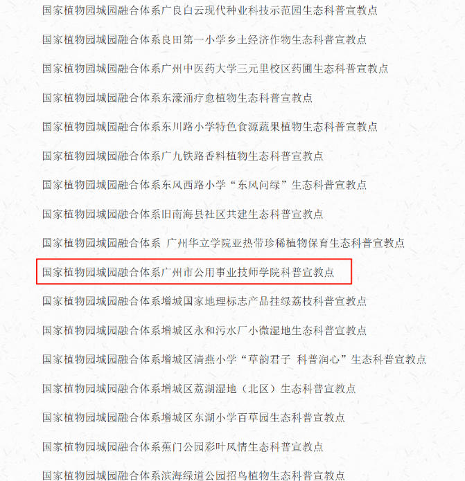 基地一:广州市公用事业技师学院科普宣教点(华南国家植物园城园融合体系)