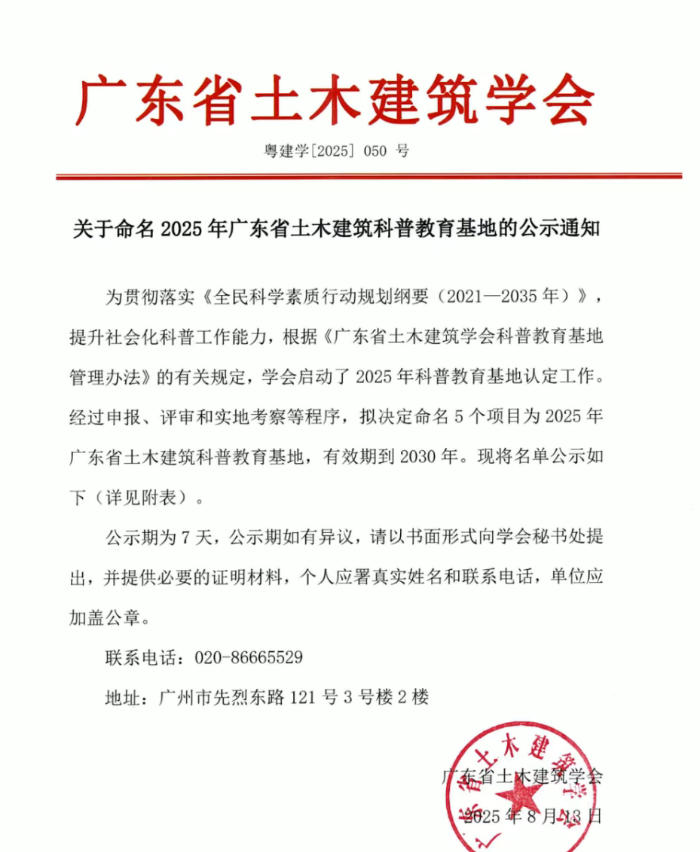 近日,学院申报的“广州市公用事业技师学院科普宣教点”成功入选华南国家植物园城园融合体系第三批生态科普宣教基地。同时,学院联合广州华森建筑与工程设计顾问有限公司成功申报为“广东省土木建筑学会科普教育基地”。学院在专业建设与科普教育、地方服务相融合方面的发展取得新突破。