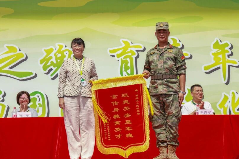 学院党委书记邹菁向增城区人民武装部赠予锦旗