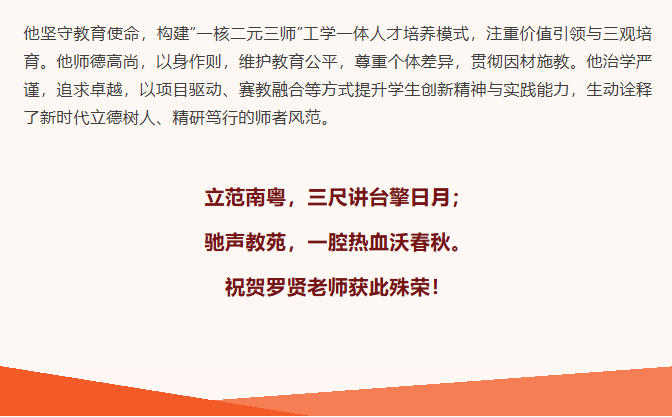 公用喜讯丨学院罗贤老师获评“南粤优秀教师”称号