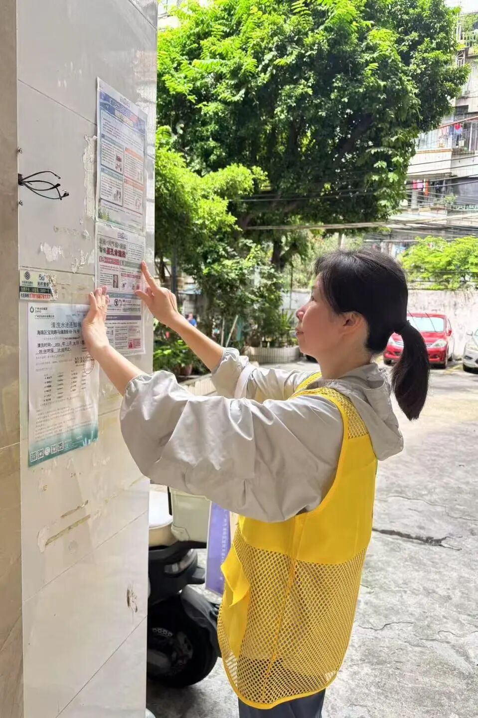 他们带着喷壶、扫帚走进楼道,清理杂物堆与积水潭;手持宣传册在小区广场讲解“两热”症状与预防要点;协助社区物业对公共区域进行清洁……社区居民纷纷点赞,表示对这份担当的认可。