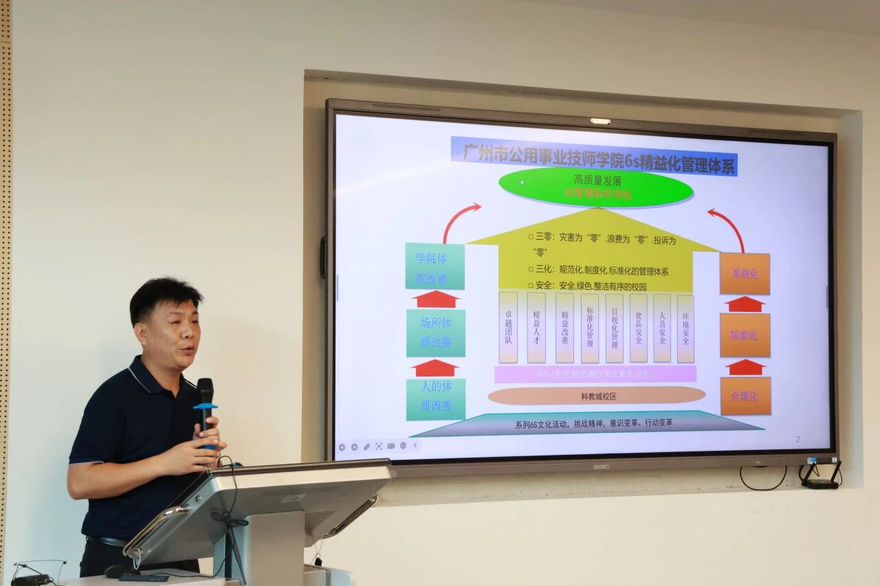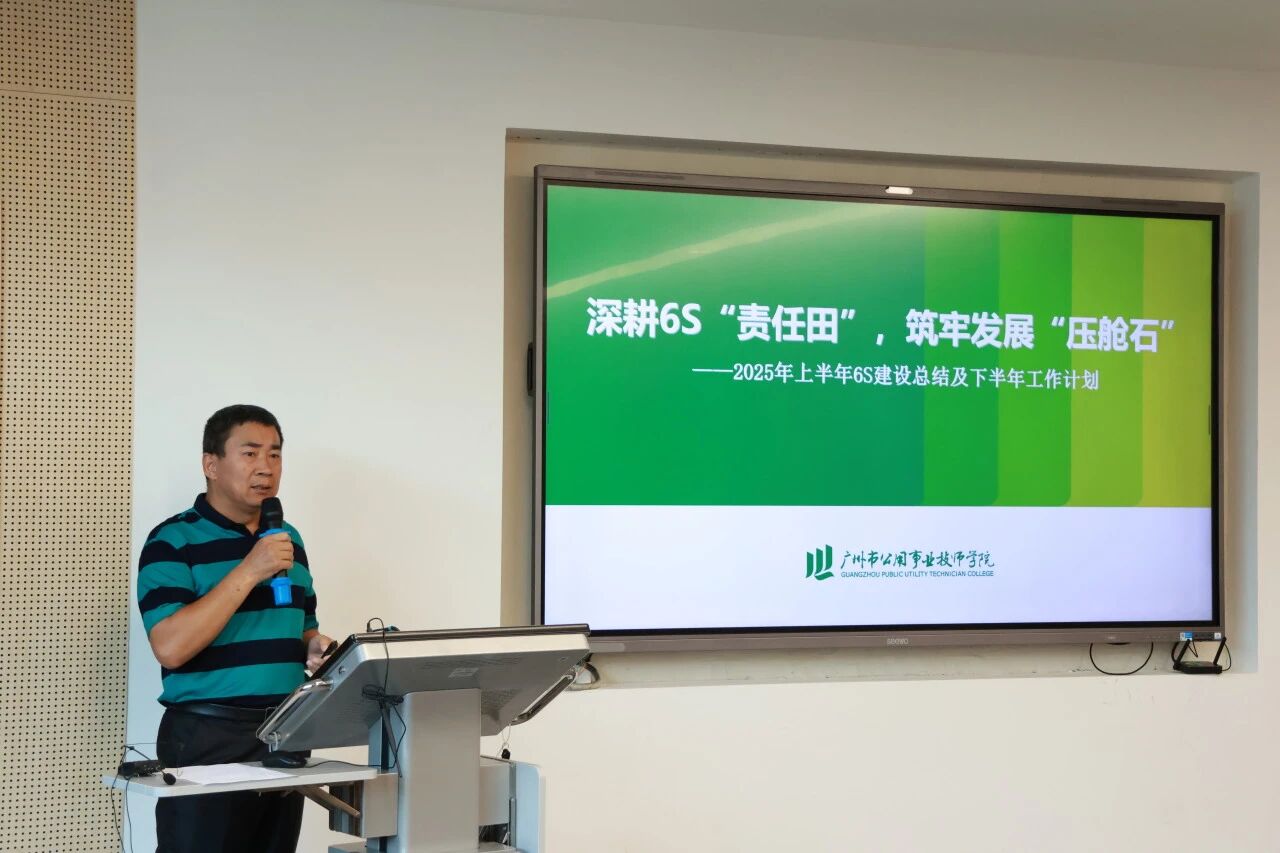 会上,行政办公室副主任陈明亮作上半年学院6S安全工作总结,并汇报本期工作计划。他提出,学院2025年下半年6S工作将继续围绕中心大局,服务高水平技师学院建设工作及“内涵发展年”相关要求,以固化3.0样板室建设成果为抓手,持续深化6S管理体系建设。