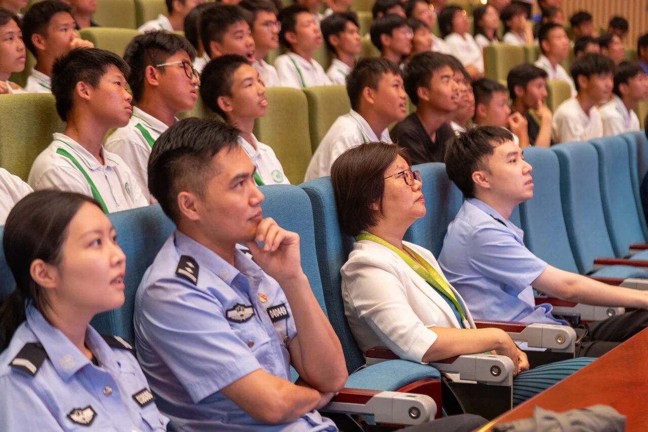 廖所长以“筑牢法治观念,点亮青春航班”为主题,从六大维度展开讲授:法治与青春同行、识别欺凌勇敢说不、明晰边界不闯祸、善用法律盾牌、共筑法治校园、案例情景演练。