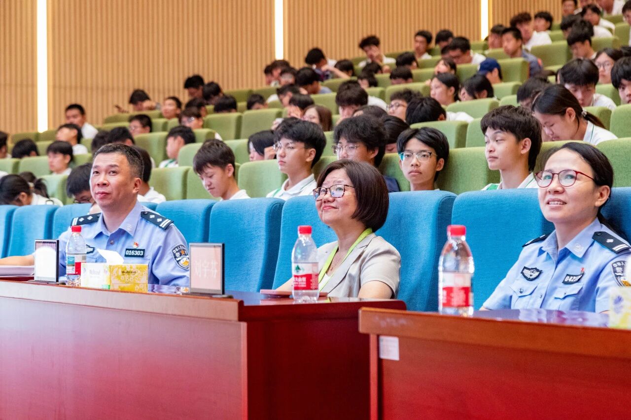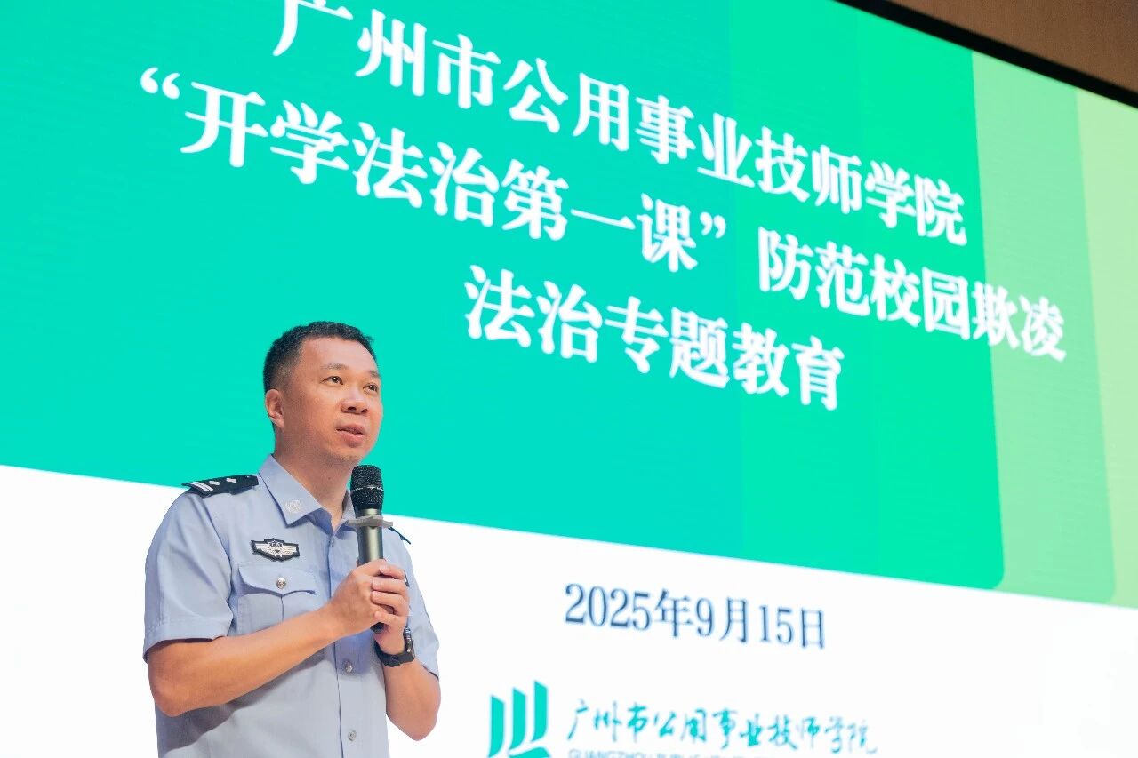 新生教育周,学院与广州市公安局增城区分局平安宣讲团联合举办“开学法治第一课”专题普法活动。学院法治副校长、朱村派出所副所长黄凯,学院专职党委副书记陈苹,学生工作处及各产业系相关人员,与2025级新生齐聚一堂,共话法治精神。