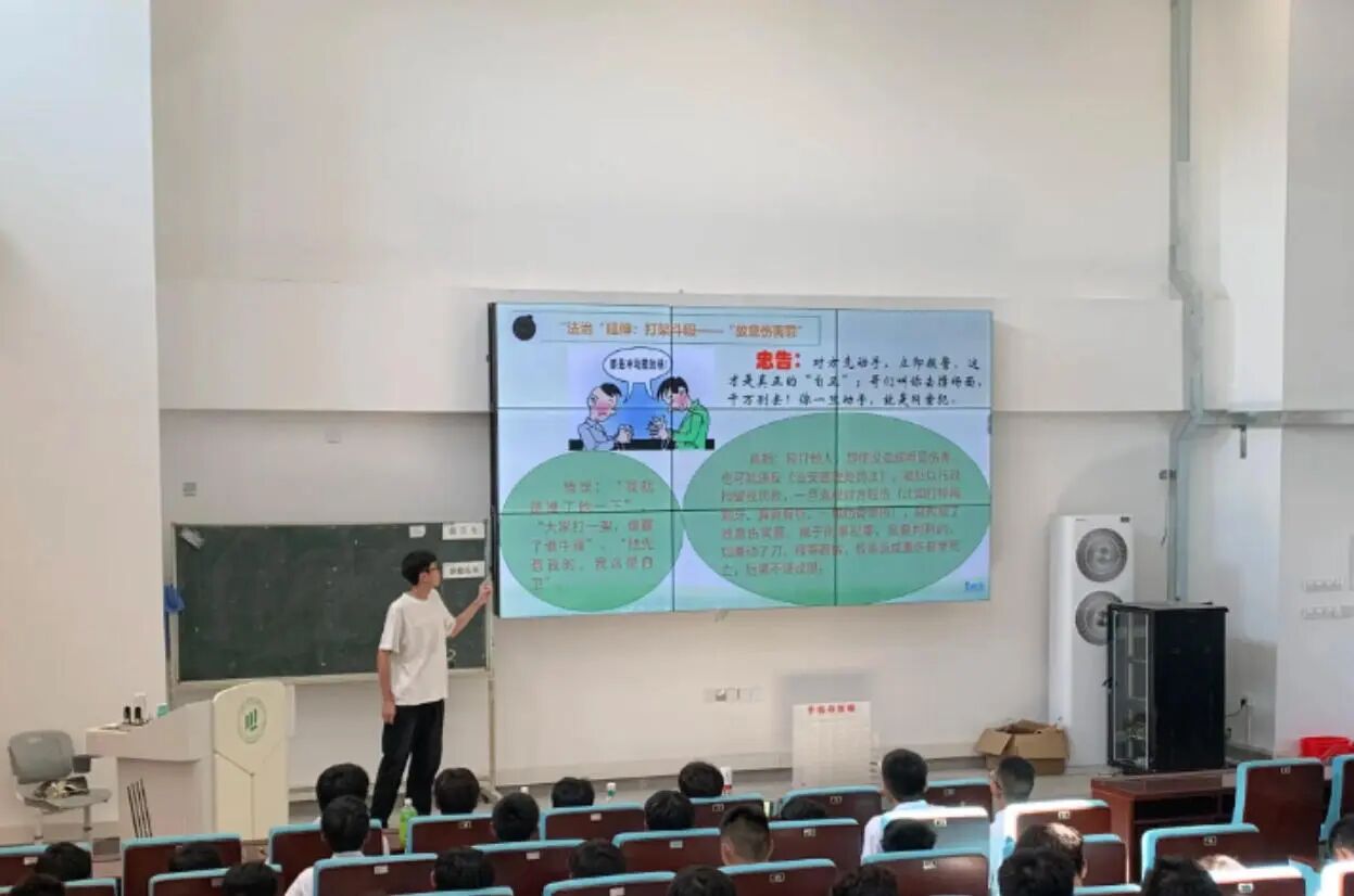 活动现场,宣讲员王雅莉警官以幽默风趣的授课方式,围绕“打架斗殴、校园欺凌、盗窃、电信网络诈骗”等方面,将精深的法治智慧转化为鲜活的生活语言,结合现实案例让学生深刻体悟到“勿以恶小而为之”的法治真谛,在同学们心中播下了法治思维的种子。