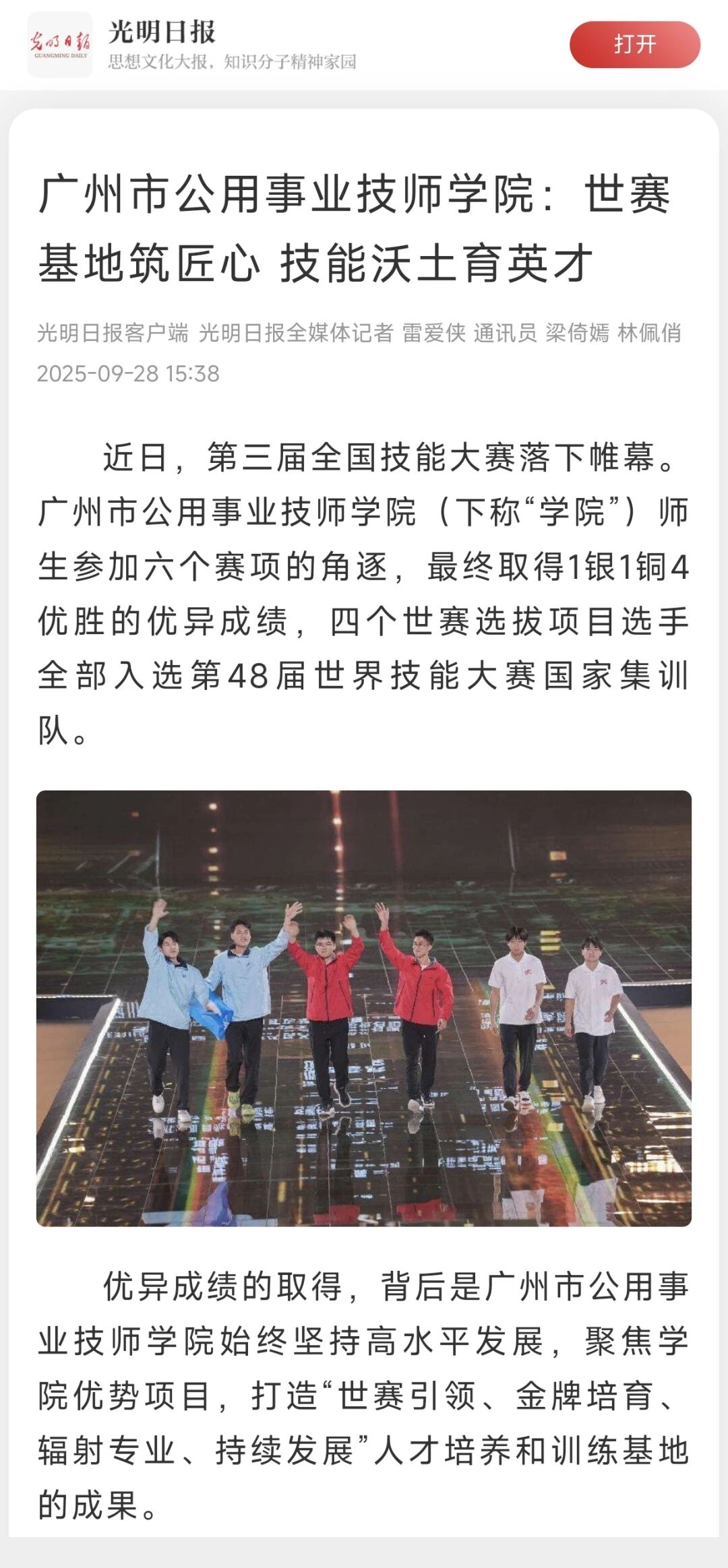从世赛奖牌的突破,到育人体系的完善,再到社会价值的延伸,广州市公用事业技师学院世赛集训基地正以匠心为笔、以技能为墨,在职业教育高质量发展的画卷上,书写着“培育大国工匠、服务产业发展”的精彩篇章。