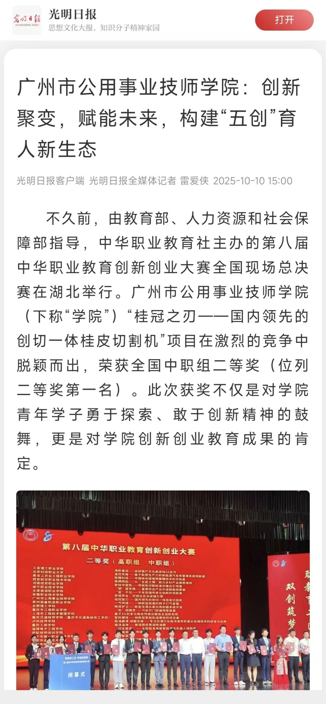《广州市公用事业技师学院:创新聚变,赋能未来,构建“五创”育人新生态》报道全文如下: