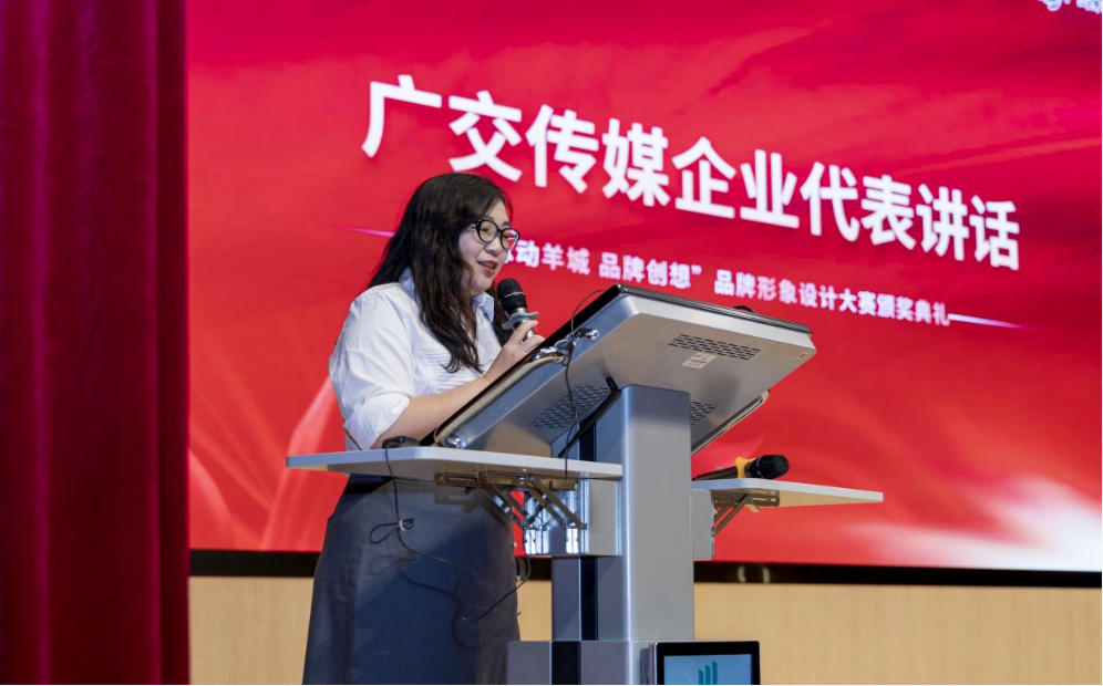 广交传媒副总经理钟兴兴致辞。她提到,年轻的创意是品牌生长的“源动力”,而学校正是孕育这份创意的“沃土”。每一份作品都看到同学们将文化底蕴与品牌的核心价值巧妙融合,展现了学生扎实的专业功底,让我们看到了年轻一代对“品牌赋能城市”的深刻理解。未来将搭建更多“创意落地”的平台,让更多校园智慧转化为推动品牌发展、赋能城市建设的力量。