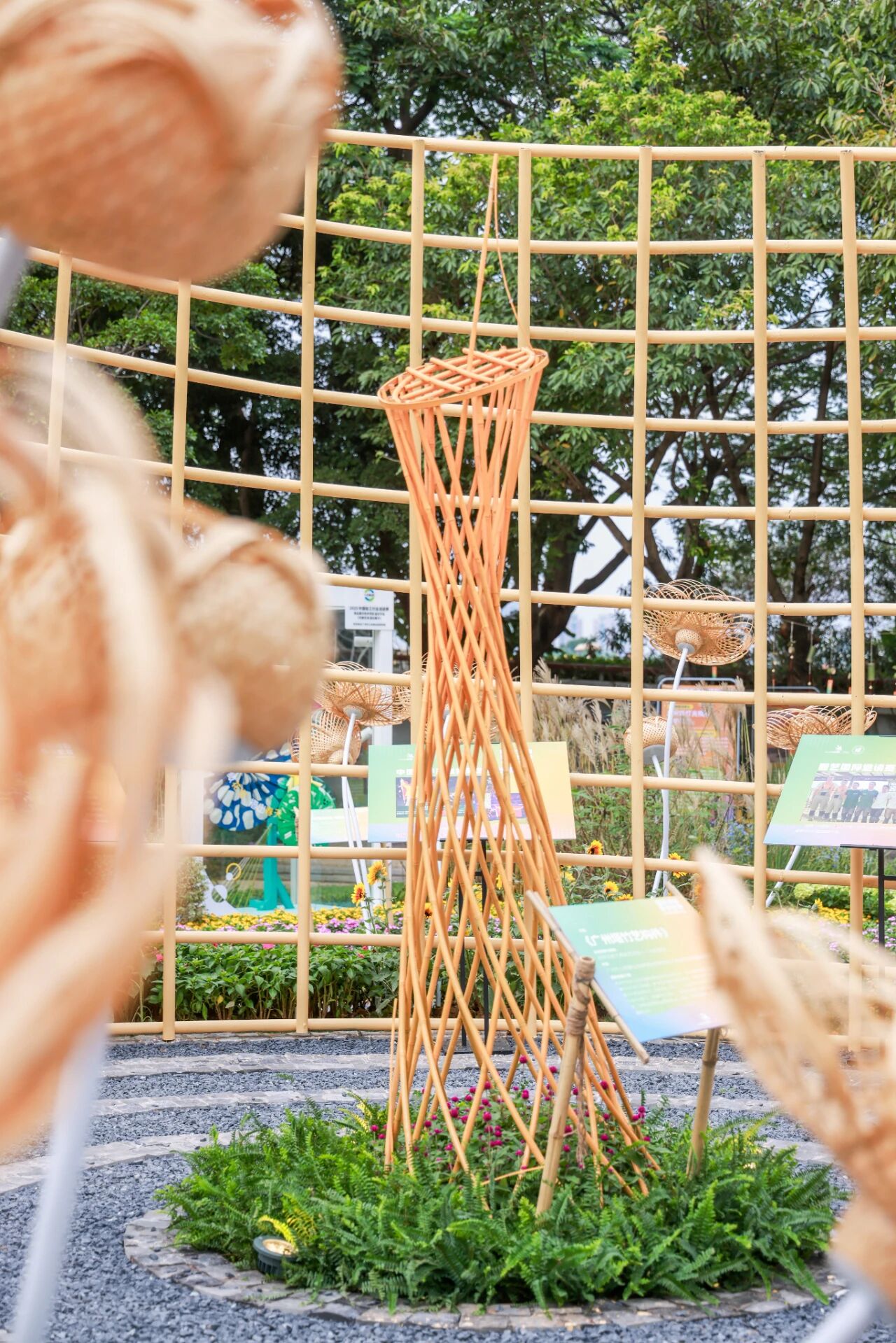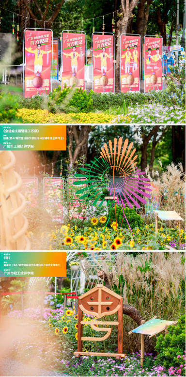 园内,传统工艺与现代设计相映成趣。竹编螺旋构架成为视觉焦点,融合技艺传承与结构创新;层次丰富的岭南花境,精选红花檵木、黄金榕等本土植物,勾勒出四季流转的生态画卷;模块化可拆装设计,贯彻绿色可持续理念,实现展后回迁与循环利用。整座展园不仅呈现艺术美感,更成为生态智慧与工匠精神的生动课堂。