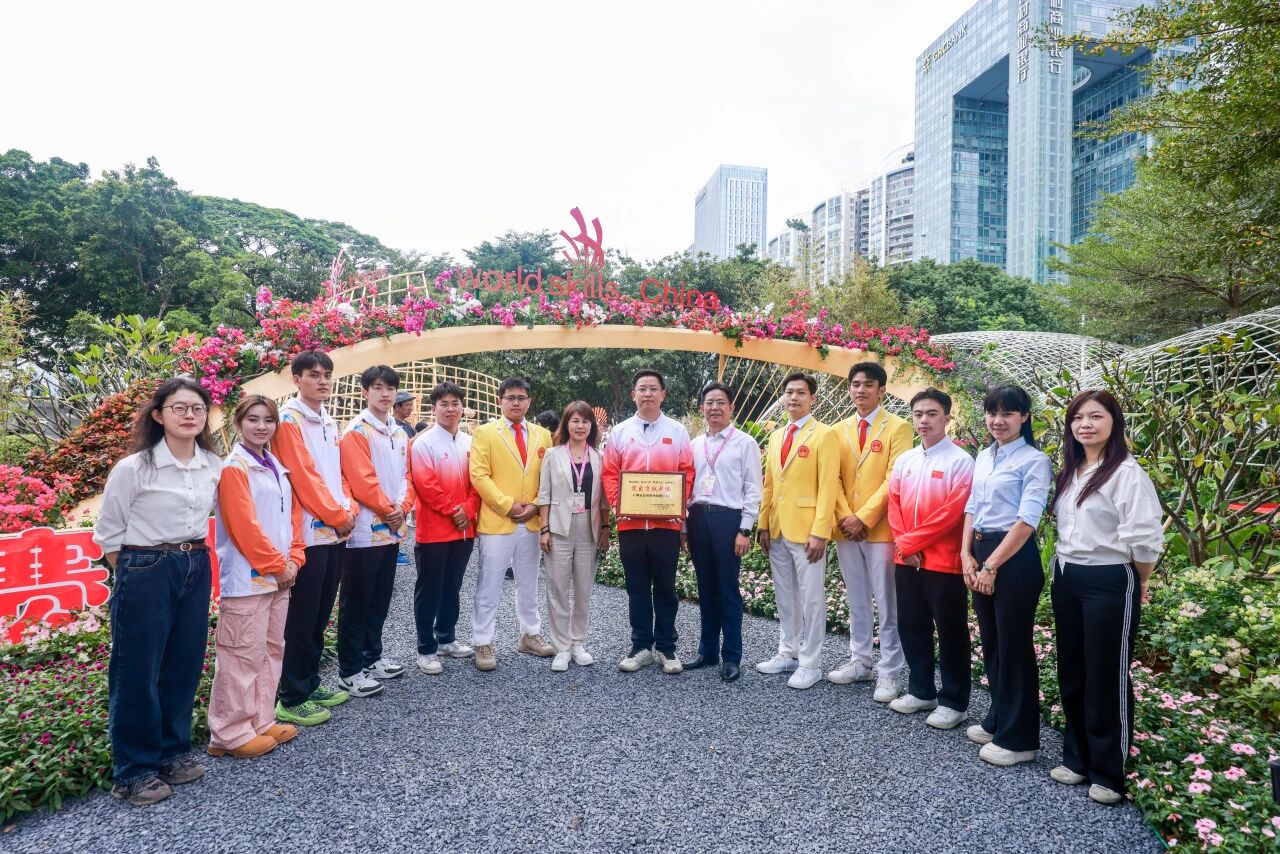 除学院园艺项目团队打造的竹艺景观外,由学院商品展示技术团队打造的2025中国轻工行业选拔赛商品展示技术项目金奖作品“鸟瞰花海 褶出春天”在世赛园同步展出,学院优秀毕业生、第45届世界技能大赛园艺项目国家集训队选手董嘉伟负责景观施工的海珠区展园《汐岸听潮·园叙古今》,斩获园博会银奖和最佳建造奖。这不仅是一次教学成果的集中展示,更是职业教育对接城市文化与国际标准的生动实践。