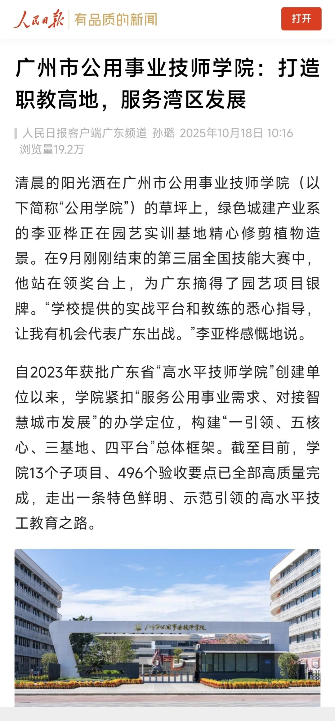 《广州市公用事业技师学院:打造职教高地,服务湾区发展》报道全文如下: