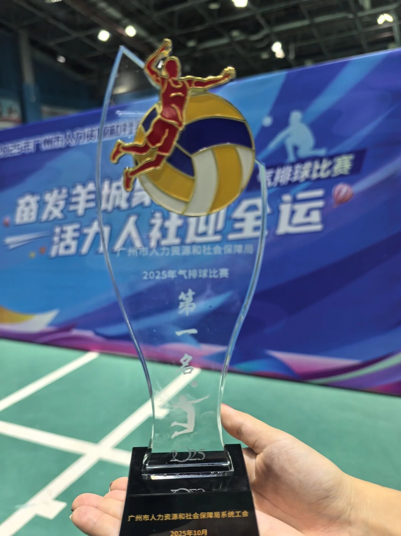 11月5日,2025年广州市人力资源和社会保障局气排球比赛在海珠区全民健身中心圆满落幕,来自局系统的17支代表队演绎了一场气排球比赛盛会。最终,学院教工代表队凭借所有对阵场均以2:0完胜、未负一局的战绩勇夺第一名,充分展现了公用气排球运动的实力。