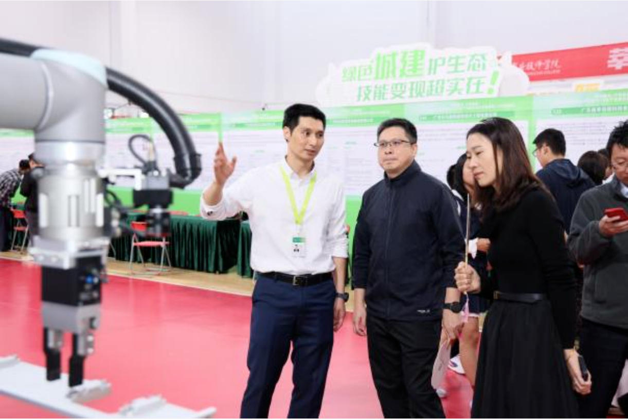 活动现场同步开放了五大产业系技能成果展区,集中展示了学院师生教学成果与创新作品。各系师生现场演示机器人操作、智能网联系统、建筑信息模型、电竞互动等项目,吸引众多企业代表驻足交流。