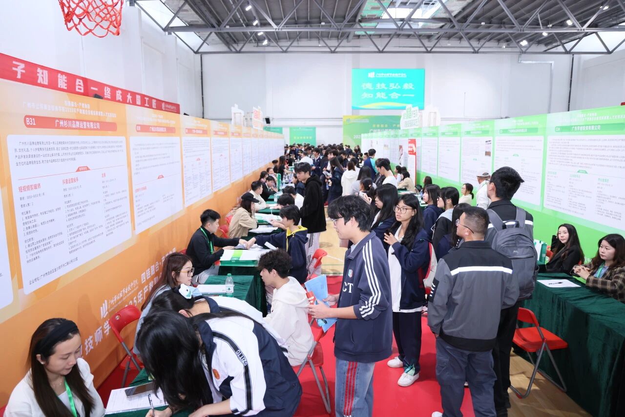 校企洽谈与人才对接在体育馆全面启动。200余家企业设立展位,带来5750个精选岗位,覆盖5大专业群30+专业,从生产制造、技术研发到社会服务全链条全覆盖,面向来自本校及广州市工贸技师学院、广州市技师学院、广州市交通技师学院、广州市城市职业学院、广州市城市建设职业学校五所兄弟院校的2500+名学子开展招聘宣讲与面试。初步统计企业累计收到简历3000+人次,经过现场面试交流,1200人次学子与企业初步达成就业意向,不少技术类、实操类岗位当场完成“双向奔赴”,实现了人才供给与企业需求的精准对接。