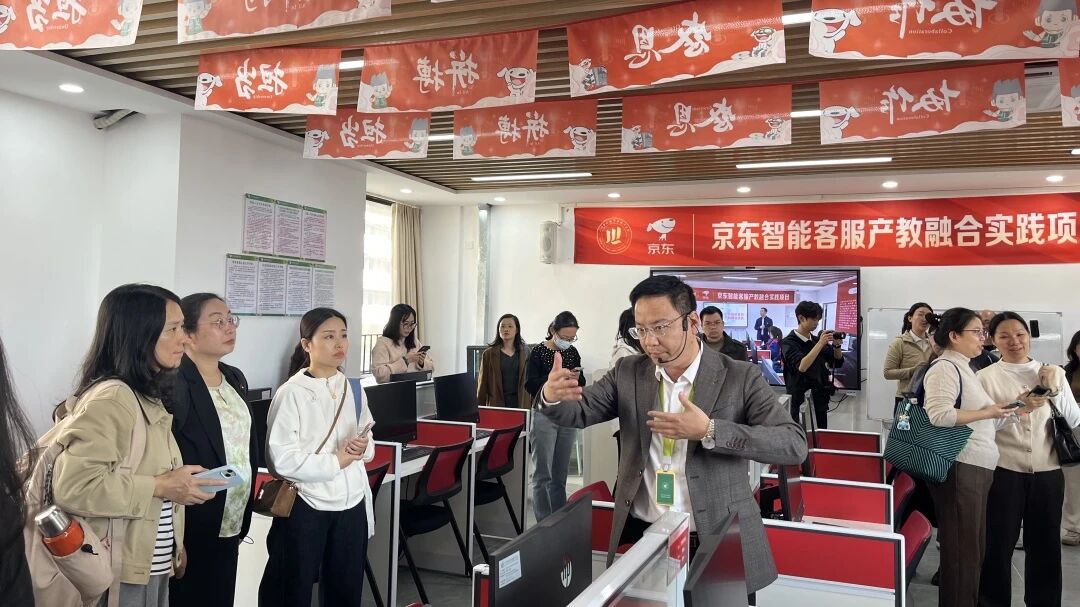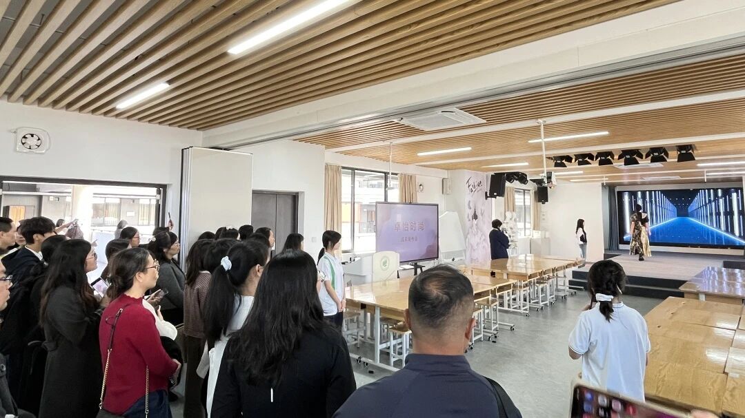 课堂观摩和实训场地参观环节,数智商贸、服装设计、普惠托育等特色实训场地同步开放,多元化学科布局与实训资源,进一步展现了学院产教融合的广度与深度,获得嘉宾广泛好评。与会嘉宾走进学院核心教学与实训场地,沉浸式感受数字营销微专业的实战教学场景。在与巨量引擎深度合作的直播推广课堂,学生围绕真实项目开展直播实操,流量运营、话术设计等前沿技能的现场呈现,生动诠释了学院“校企共建、产业赋能”的实训基地建设成果。